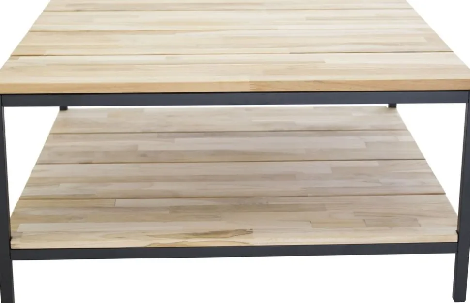 Soffbord i teak, vintage brun i färg. Stomme av svart metall.