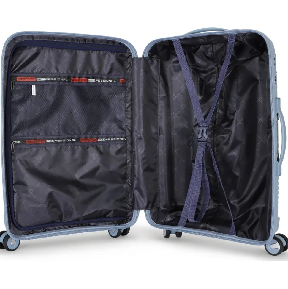 Set med 3 st i storlekarna small, medium och large för familjen. Väska i hårdplast med teleskophandtag av aluminium och plast. Alla väskorna har inbyggt lås. Låset är ett 3-siffrigt kodlås.