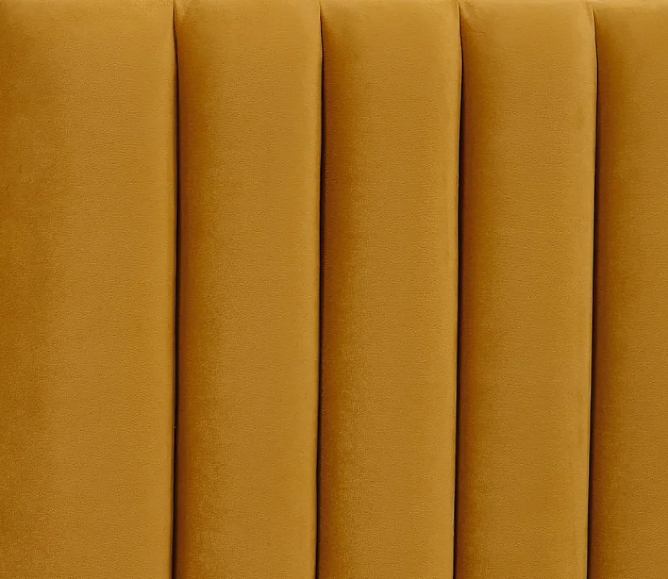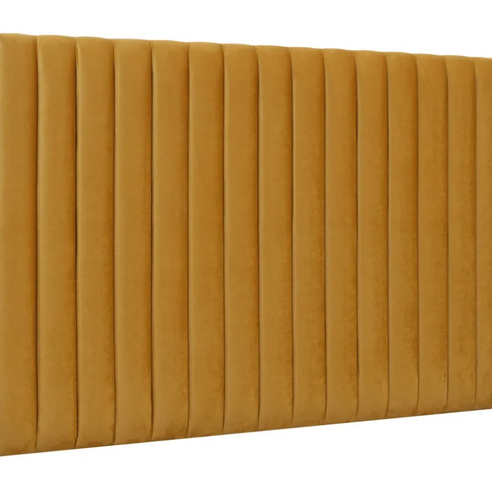 Med Ribbersborg kan man välja den bredden man har på sängen. Sänggaveln är klädd i ett guldfärgat mjukt sammetstyg med ett exlusivt nitmönster. Snygg design som ger en lyxig känsla i sovrummet.