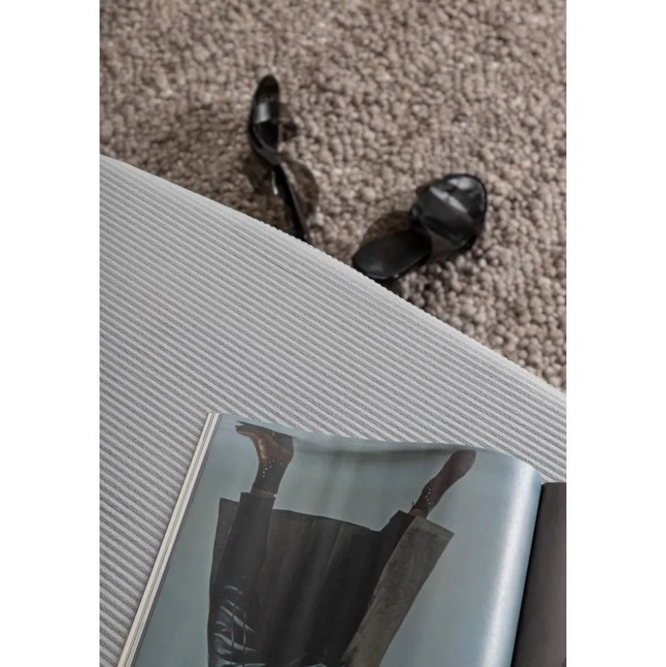 Sittpuff av trä och stål, klädd med polyestertyg.