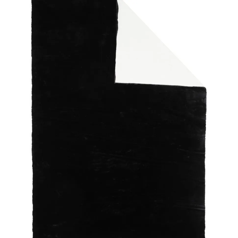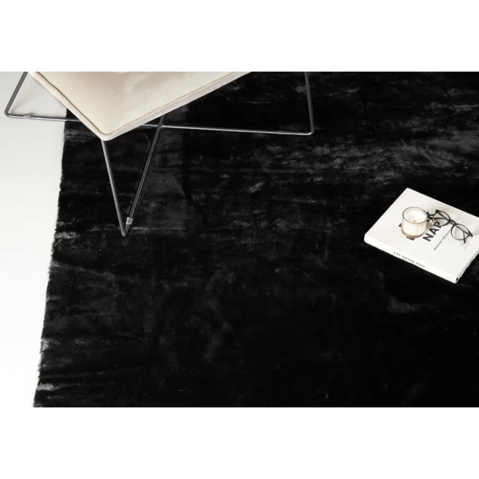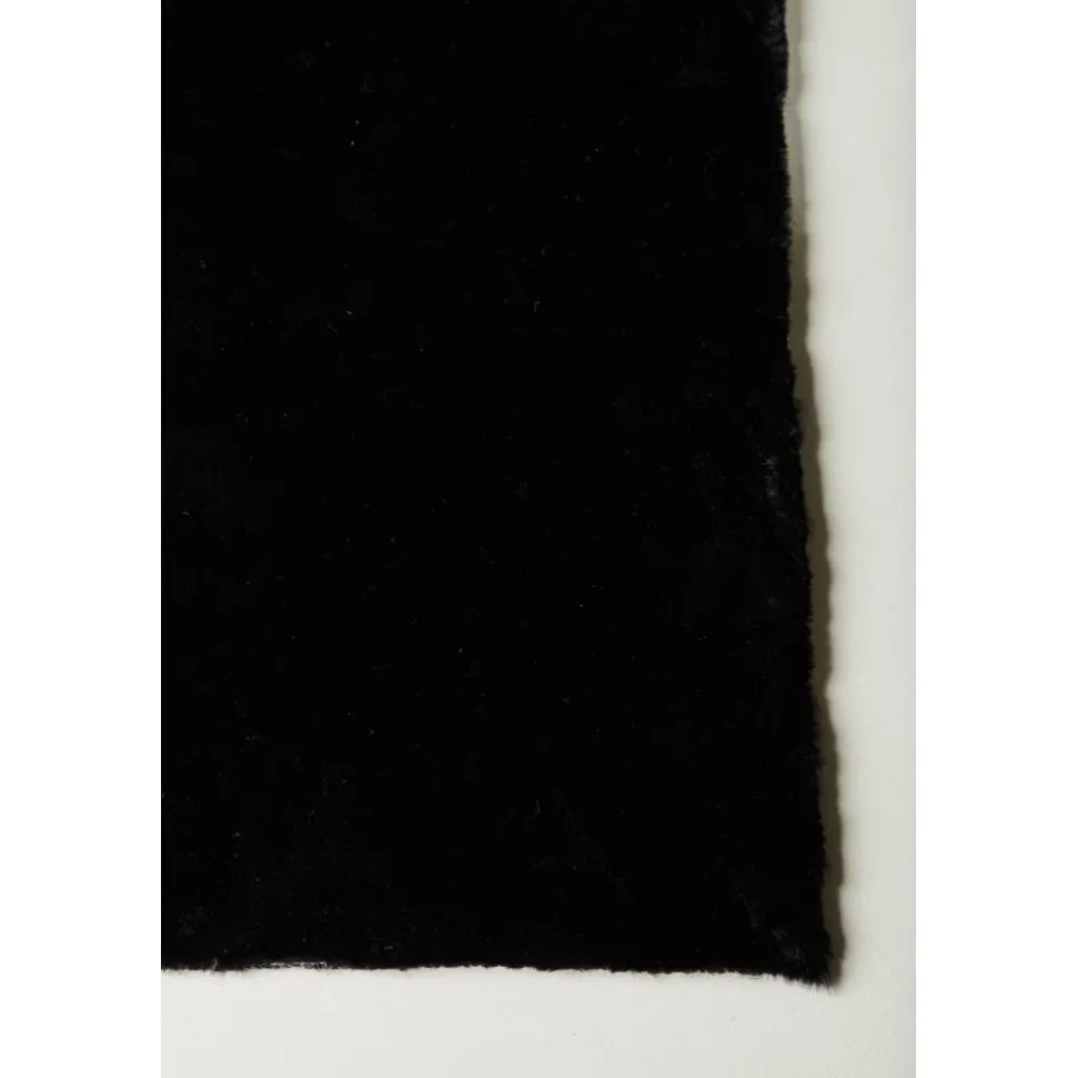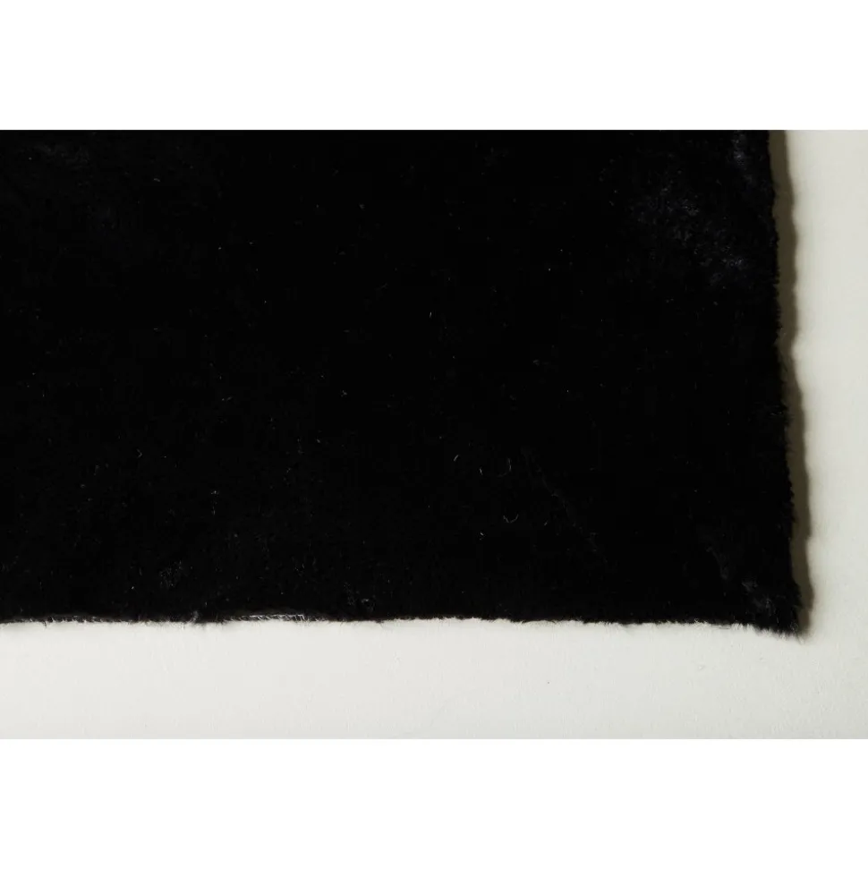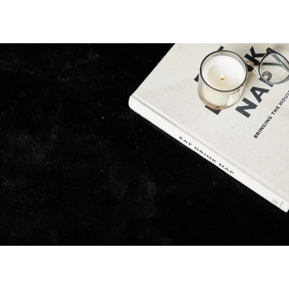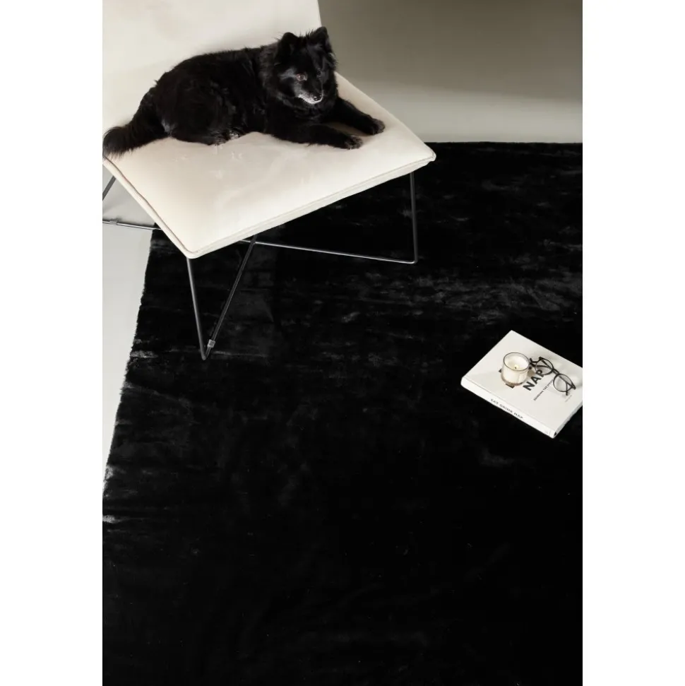 Vacker polyestermatta med silkeslen känsla i en sotig svart kulör med fina färgskiftningar som ger liv och rörelse till mattan.