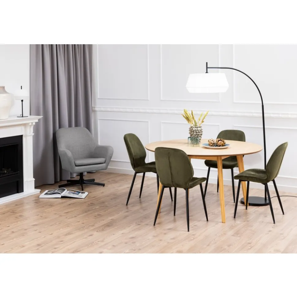 Ben av gummiträ. Bordsskiva av MDF och ekfaner.