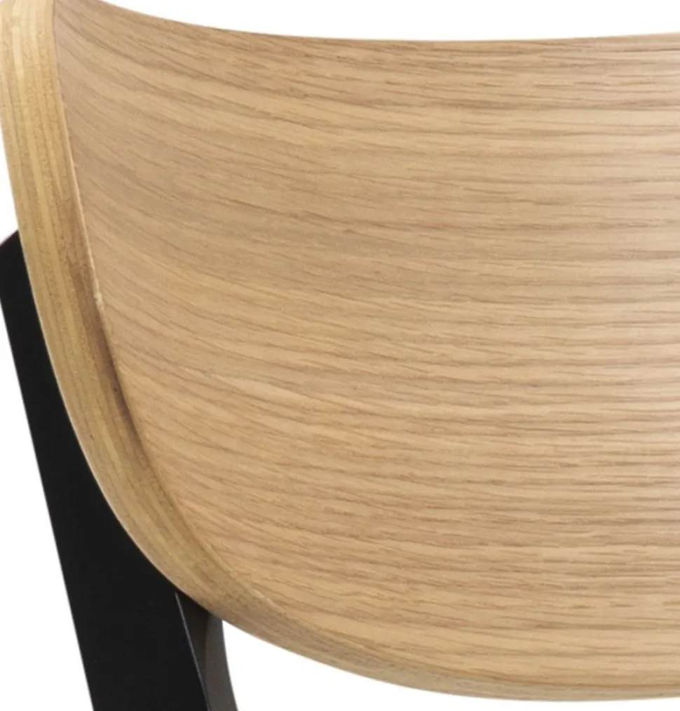 Matstol med underrede tillverkat i svartmålat gummiträd och sits samt ryggstöd i massiv ek.