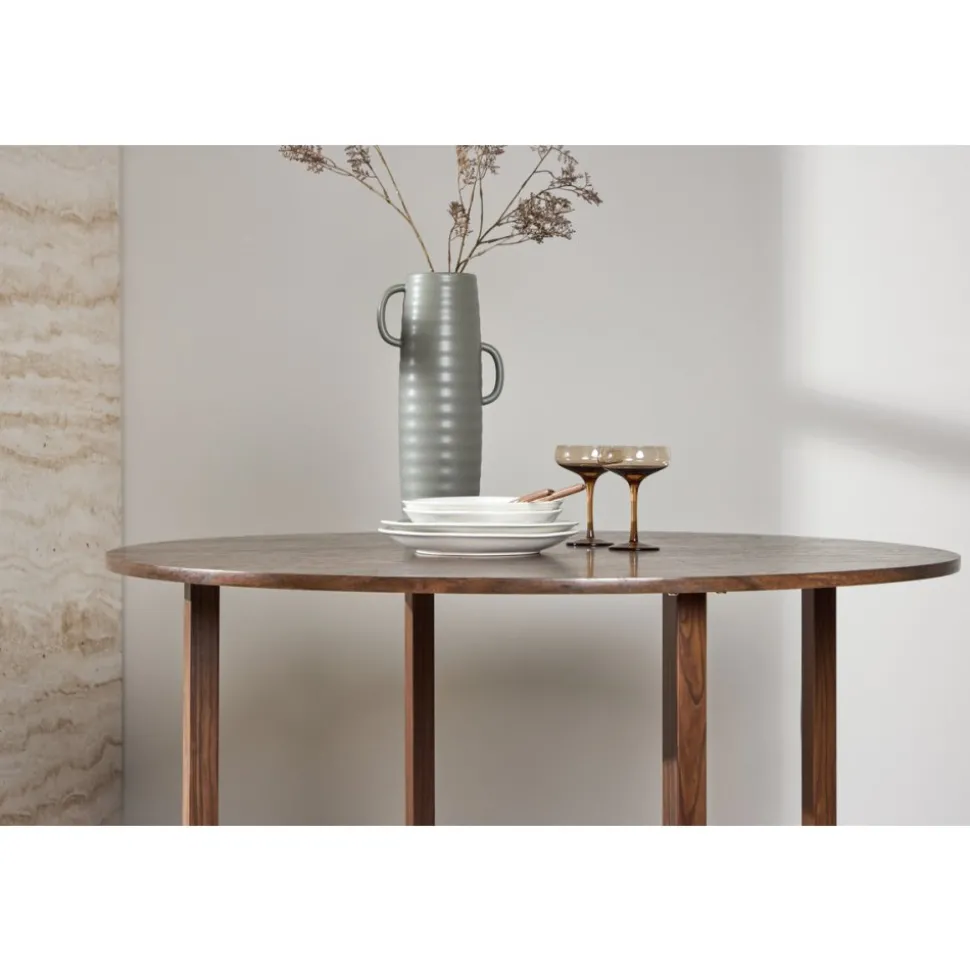 Bordet är utfört i en varm valnötsbrun nyans som skapar elegans och djup, samtidigt som den mjuka runda formen ger en inbjudande känsla och underlättar samspelet runt bordet. Tack vare den tidlösa designen smälter Durango lika fint in i moderna hem som i mer klassiska miljöer. Ett bord att njuta av varje dag.