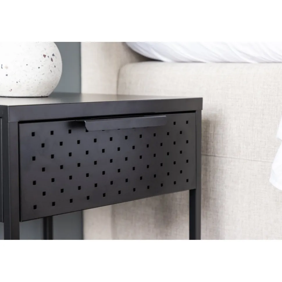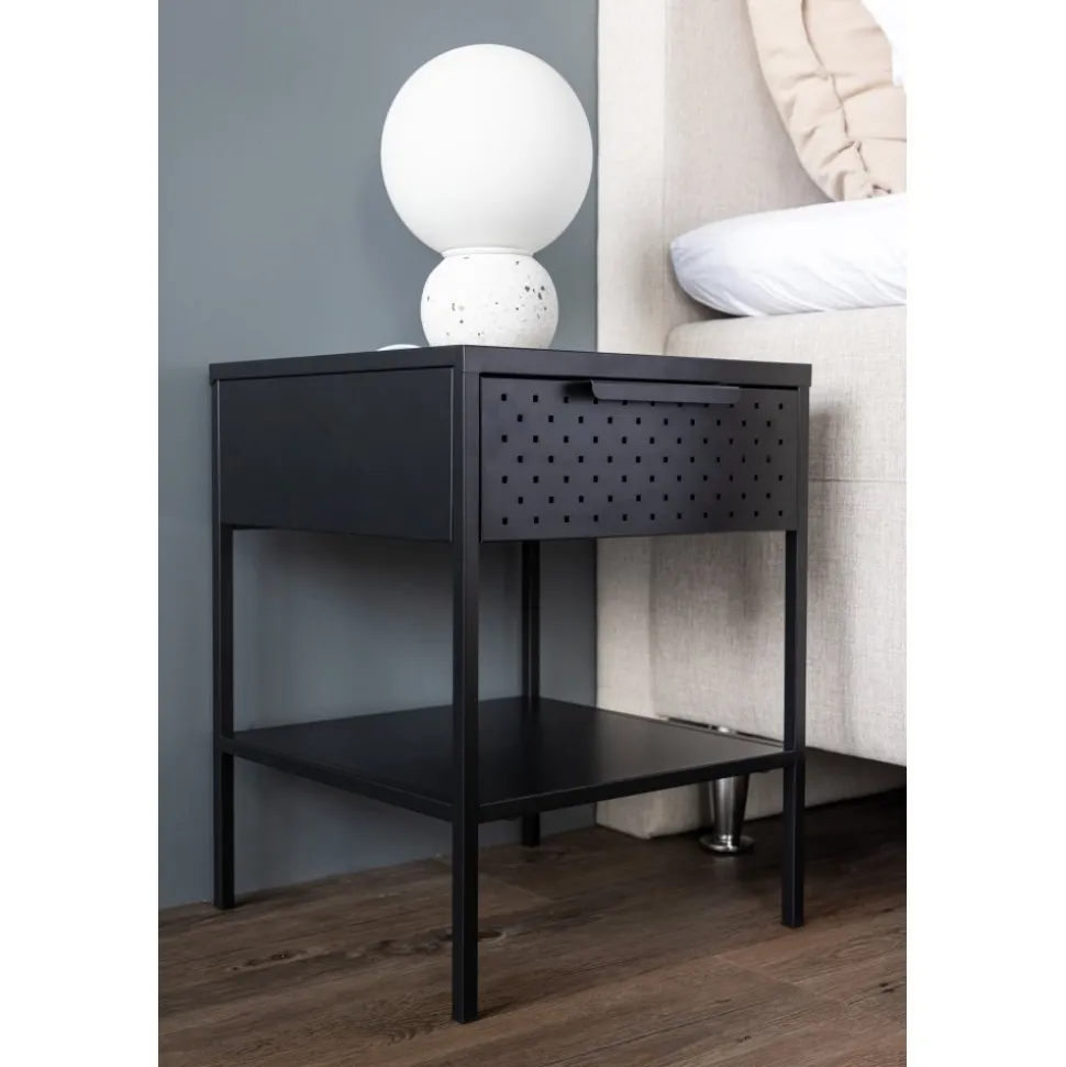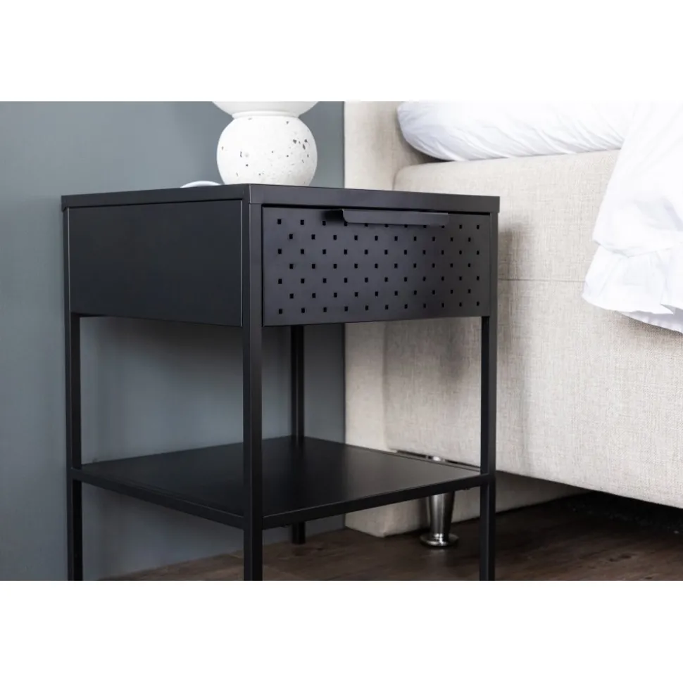 Förvandla ditt sovrum till en fristad av ordning och stilren design med vårt svart Sacramento. Med dess moderna nordiska design och stilrena linjer erbjuder detta sängbord en perfekt balans mellan funktion och estetik! Med det här sidobordet kan du enkelt njuta av den smidiga förvaringen som lådan erbjuder, där du kan ha allt du behöver inom räckhåll. Med hyllan undertill kan du visa upp din favoritbok eller andra vackra dekorationer och låta din personlighet lysa igenom. Det pulverlackerade svarta stålet ger sängbordet en touch av elegans och gör det enkelt att matcha med din övriga inredning. Varje detalj är noggrant utformad för att skapa en harmonisk atmosfär i ditt rum. Men detta mångsidiga sidobord behöver inte bara vara för sovrummet. Det fungerar absolut utmärkt som sängbord men kan likväl placeras intill soffgruppen eller varför inte i badrummet. Den ger en modern touch till vilket rum den än placeras i och kompletterar din stil på ett subtilt sätt. Med Sacramento sängbord får du inte bara en funktionell förvaringslösning utan också en estetiskt tilltalande inredningsdetalj. Låt ditt sovrum eller vardagsrum spegla din unika smak med Sacramento – ett stilrent sidobord som tillför det där lilla extra! Levereras omonterad.