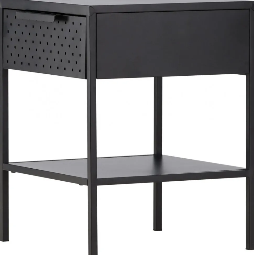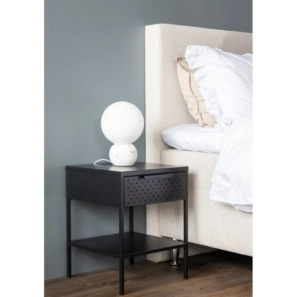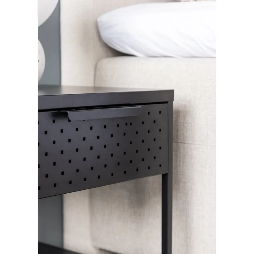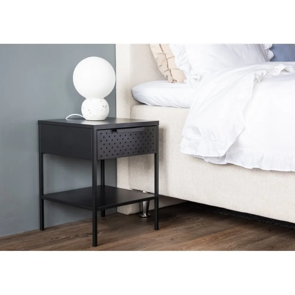 Förvandla ditt sovrum till en fristad av ordning och stilren design med vårt svart Sacramento. Med dess moderna nordiska design och stilrena linjer erbjuder detta sängbord en perfekt balans mellan funktion och estetik! Med det här sidobordet kan du enkelt njuta av den smidiga förvaringen som lådan erbjuder, där du kan ha allt du behöver inom räckhåll. Med hyllan undertill kan du visa upp din favoritbok eller andra vackra dekorationer och låta din personlighet lysa igenom. Det pulverlackerade svarta stålet ger sängbordet en touch av elegans och gör det enkelt att matcha med din övriga inredning. Varje detalj är noggrant utformad för att skapa en harmonisk atmosfär i ditt rum. Men detta mångsidiga sidobord behöver inte bara vara för sovrummet. Det fungerar absolut utmärkt som sängbord men kan likväl placeras intill soffgruppen eller varför inte i badrummet. Den ger en modern touch till vilket rum den än placeras i och kompletterar din stil på ett subtilt sätt. Med Sacramento sängbord får du inte bara en funktionell förvaringslösning utan också en estetiskt tilltalande inredningsdetalj. Låt ditt sovrum eller vardagsrum spegla din unika smak med Sacramento – ett stilrent sidobord som tillför det där lilla extra! Levereras omonterad.