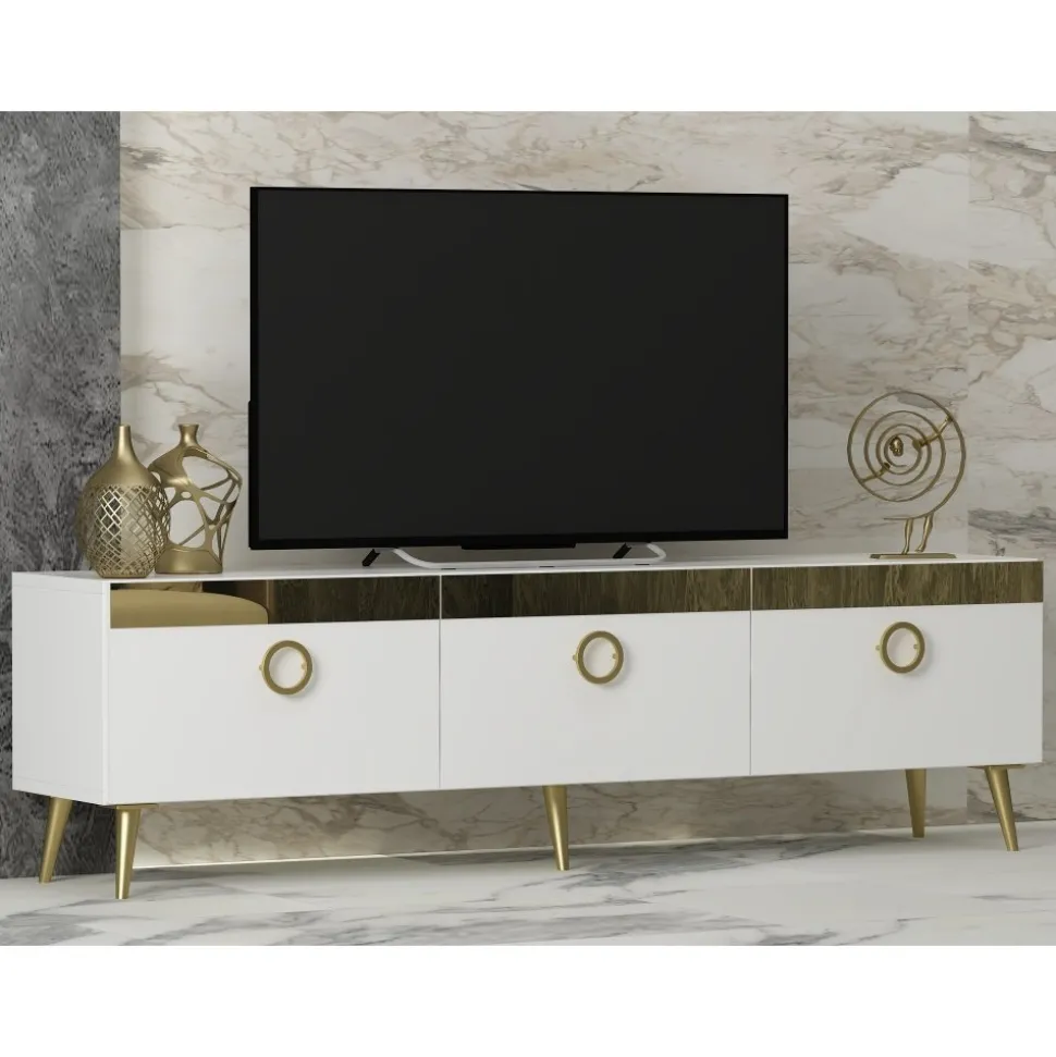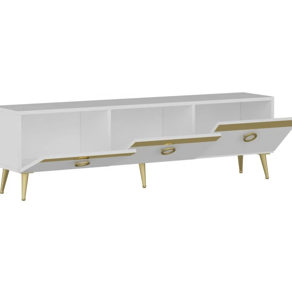 Mediabänk av spånskiva.