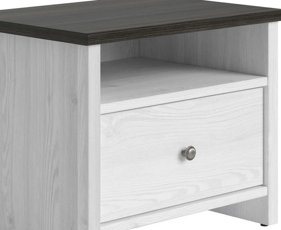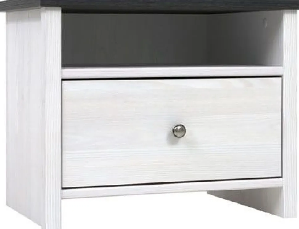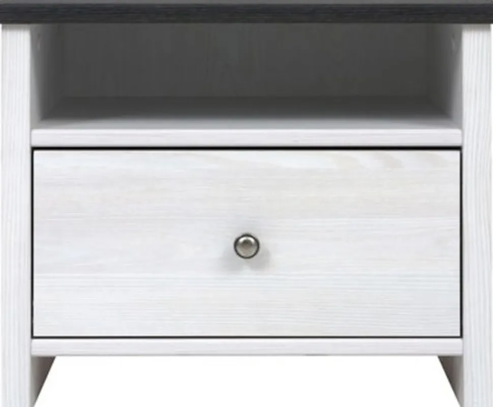 Nätt stilfullt med en låda, dekorativt handtag i metall. Toppskivan är stabil och reptålig.