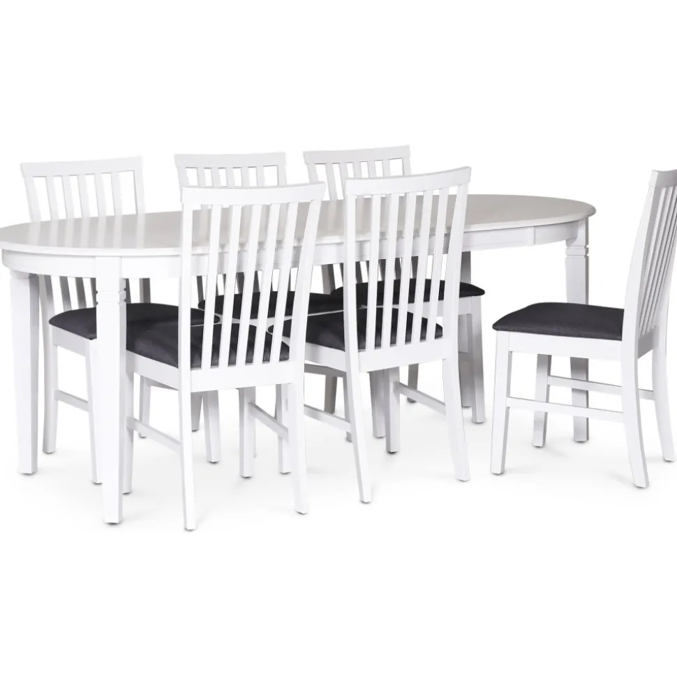 Sandhamn matgrupp; Ovalt matbord med 6 st Sandhamn Alice matstolar: