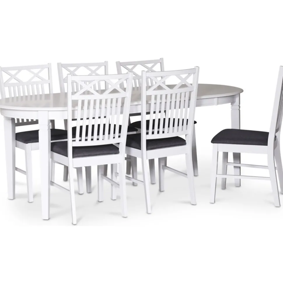 Sandhamn matgrupp; Ovalt matbord med 6 st Sandhamn Gripsholm matstolar: