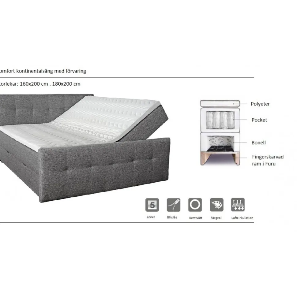 Siesta Sängpaket erbjuder en elegant dubbel med ett påkostat 5-zons pocketfjädersystem som ger optimalt stöd och hög sovkomfort. Sängen har ett generöst förvaringsutrymme under liggytan, perfekt för exempelvis sängkläder och extra täcken. Paketet inkluderar även en stilren sänggavel och fotgavel som tillsammans skapar ett enhetligt och ombonat intryck.