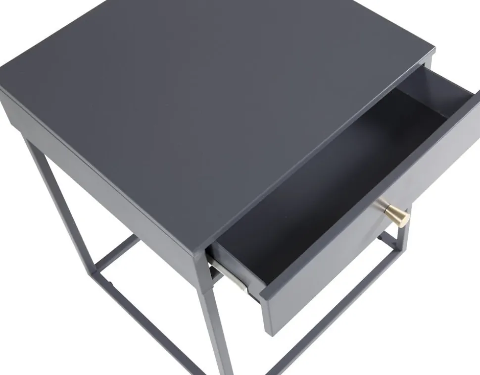Torsnäs ger dig möbler i stilren design, olika färger på sängbord, vitrinskåp, skrivbord, soffbord och skåp. Tillverkade av hållbar metall som är pulverlackerad. Detta är minimalistiskt med en låda på ett stadigt stativ. Liten knopp som handtag.