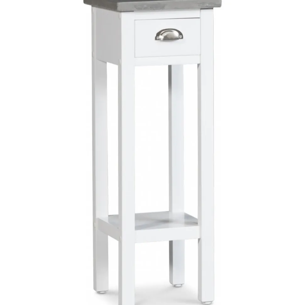 Sängbord i vitlackat trä med 1 st låda, toppskiva i cement.