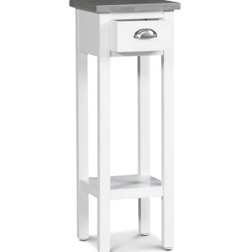 Detta prydliga i vitt trä är den perfekta detaljen för ditt sovrum. Den tåliga toppskivan i cement gör inte bara sängbordet vackert, utan också funktionellt och hållbart. Cementet är lätt att rengöra och motståndskraftigt mot slitage, vilket gör det till ett utmärkt val för ett sängbord som ofta används.