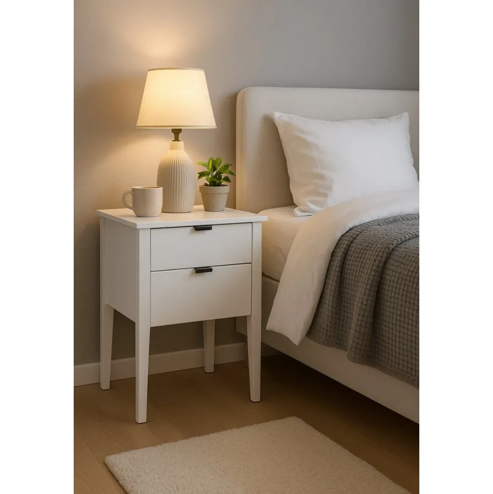 - Sängbord med två lådor vit – Sunderland
