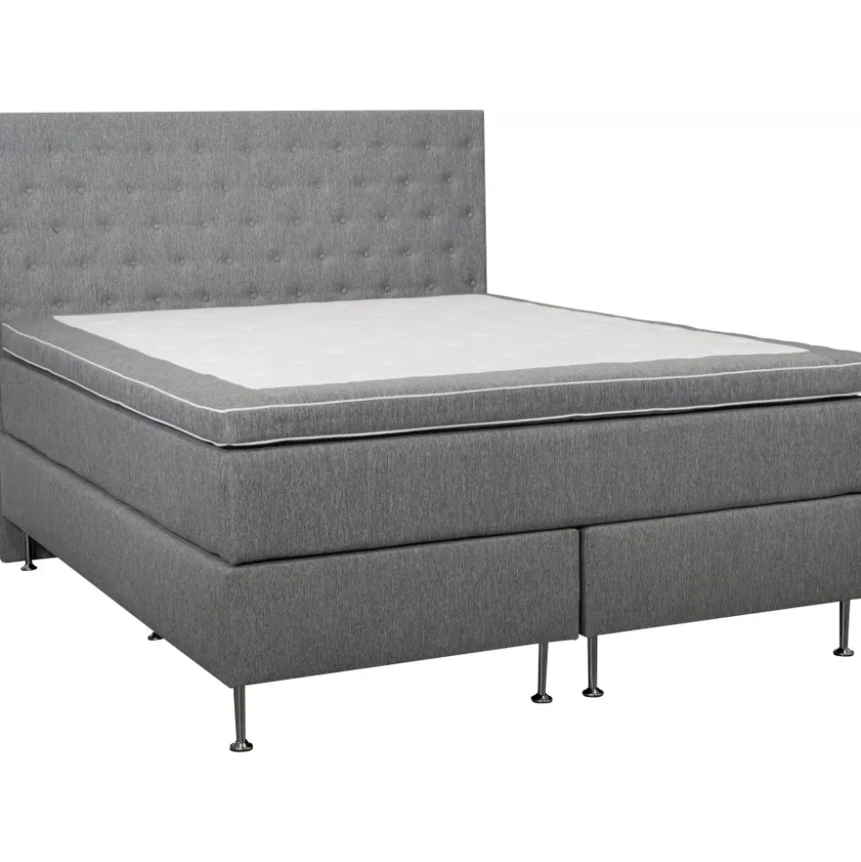 Sänggavel med inhäftade knappar i ett vackert grått tyg. Sänggaveln är 130 cm hög och anpassad för 160 cm breda sängar.