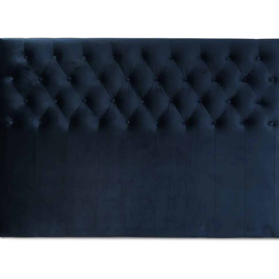 Sänggavel Anna i ett mörkblått sammetstyg med en mjuk känsla. Snygg design med djuphäftade knappar för att ge ett lyxigt utryck i sovrummet.