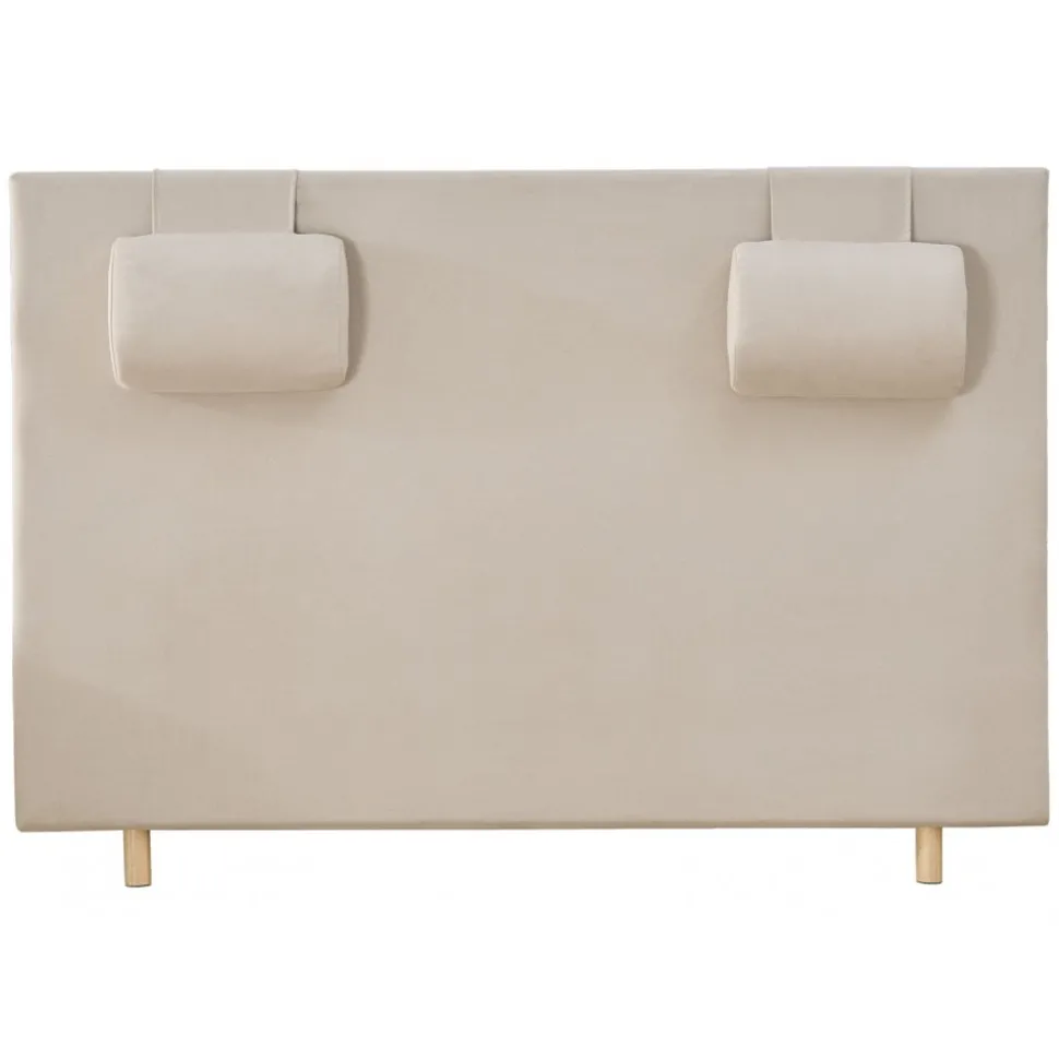 Alnö slät med nackkuddar 180 cm bred. Totalhöjd: 125 cm inklusive ben. Beige tyg.