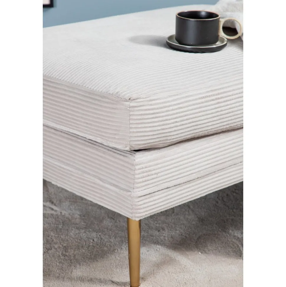 Sittpuff av trä och metall, klädd med polyestertyg.