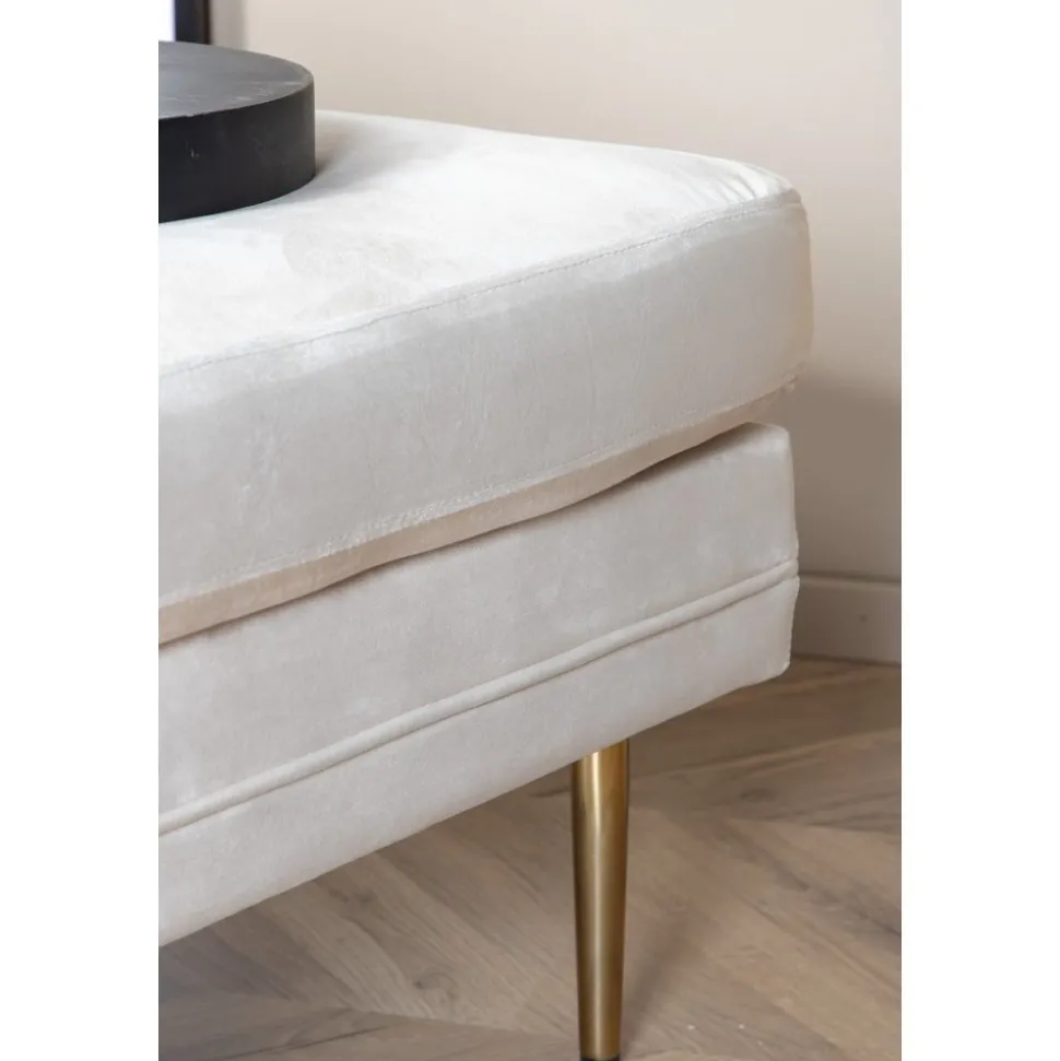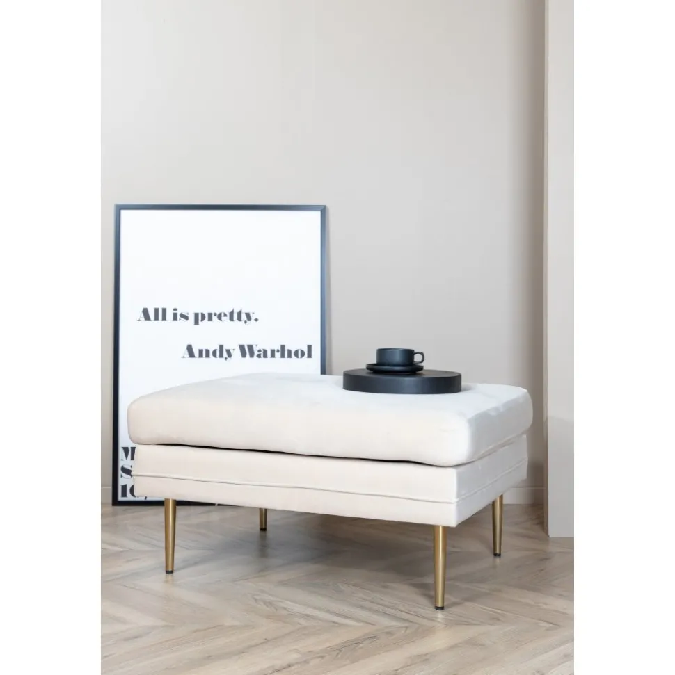 Sittpuff av trä och metall, klädd med polyestertyg.