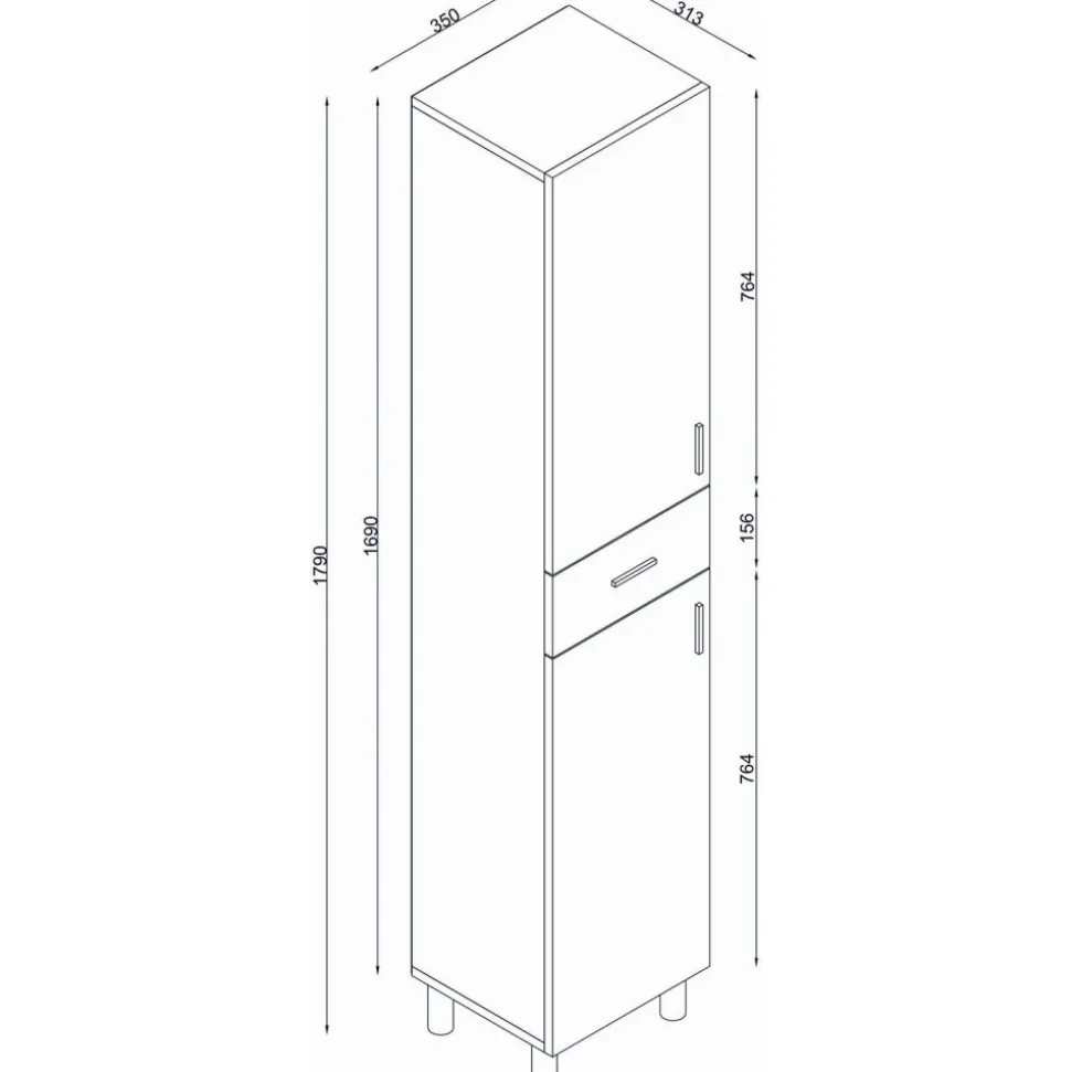 Skåp av melaminbelagd spånskiva.