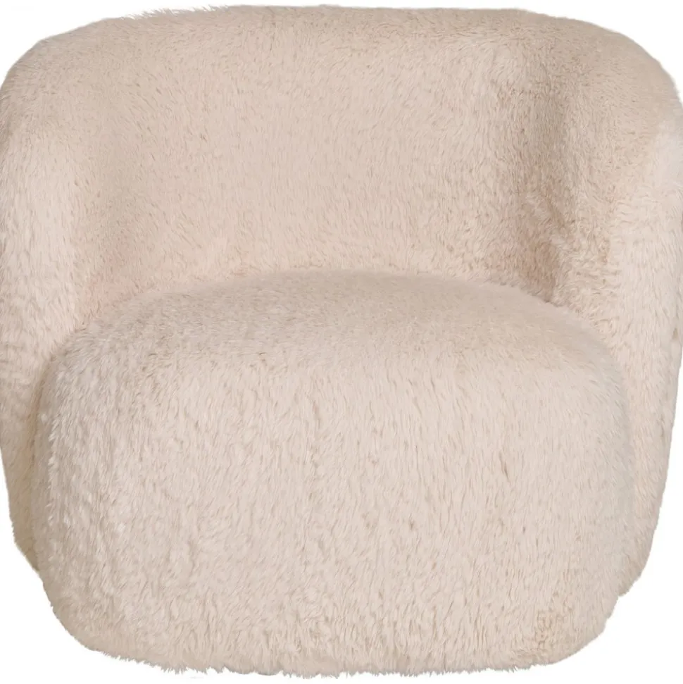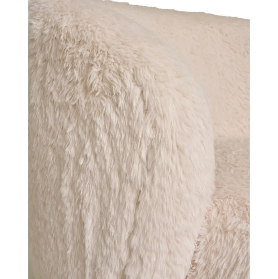 Fåtölj av bokträ med klädsel av fuskpäls(polyester). Levereras monterad.