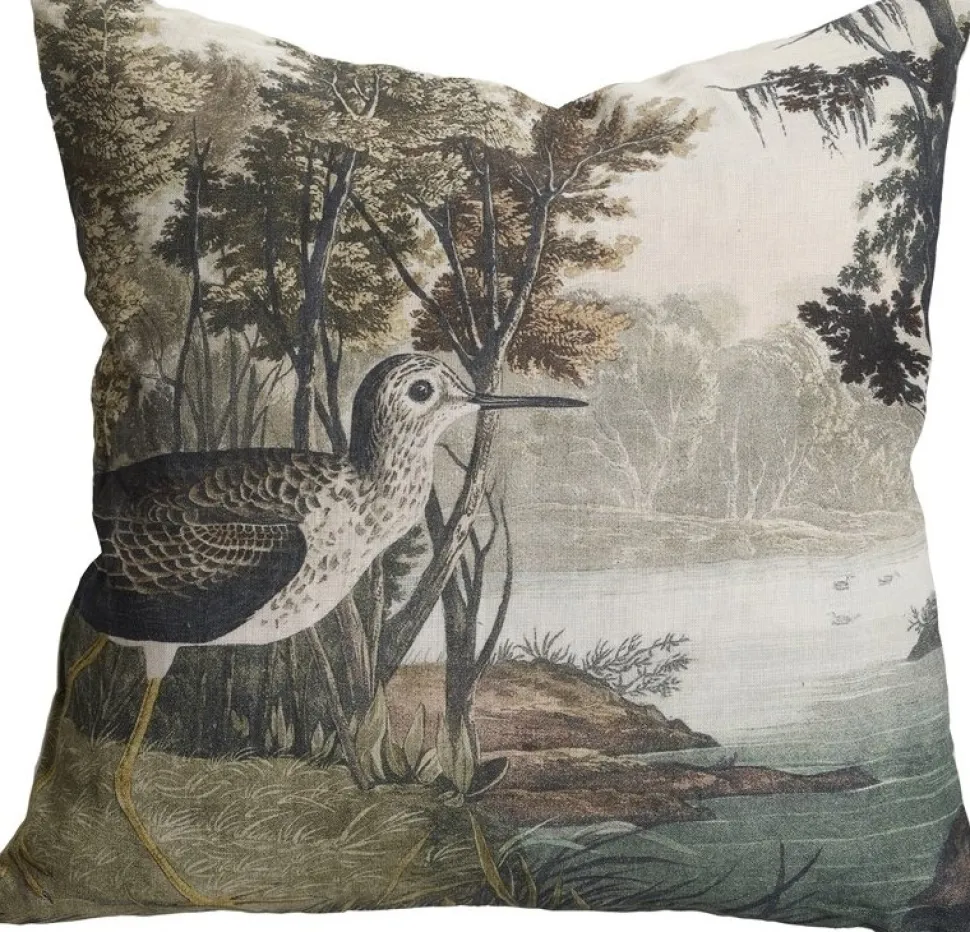 Kuddfodral med en mönstrad framsida i linne och en slät baksida i bomullsslub.