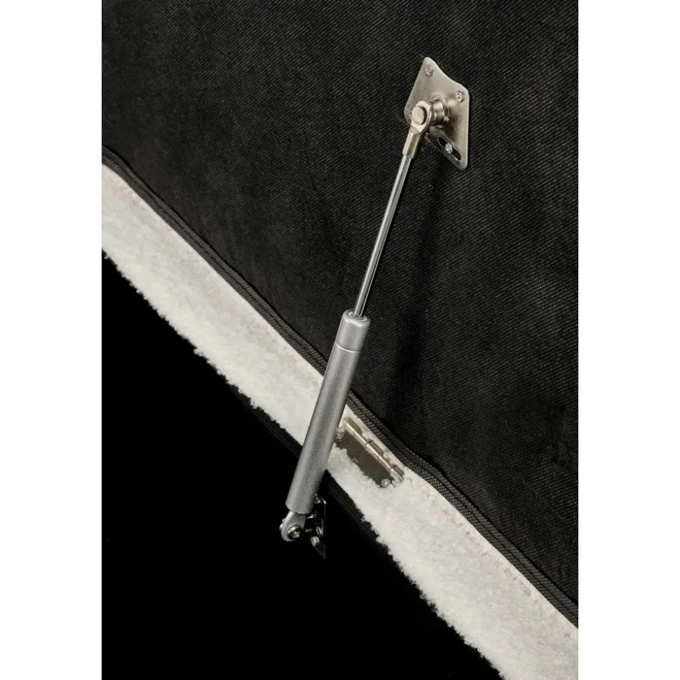 Sittbänk med underrede av stål och klädsel av boucletyg. Lyft locket och förvara saker i sittbänken. Praktiskt och enkelt.