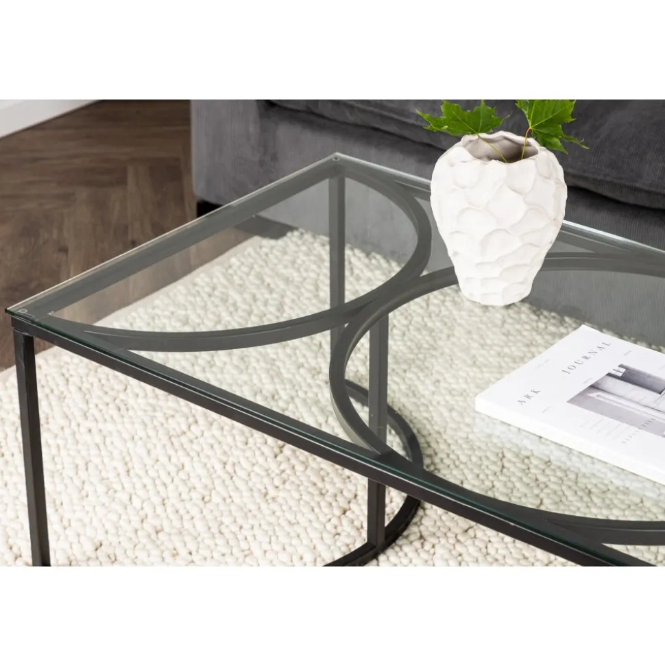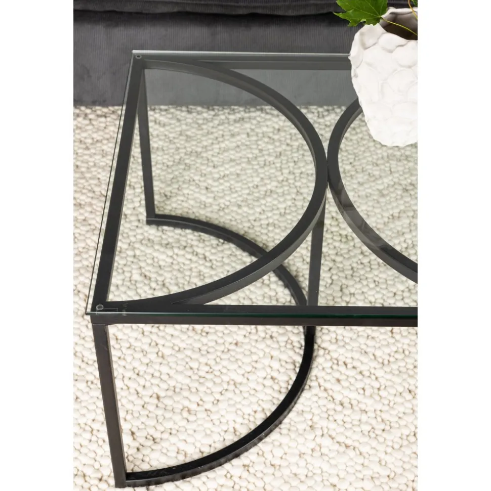 Inred vardagsrummet imponerande med ett i modern, industriell design. Soffbordet har en rektangulär toppskiva i glas och cirkelformade stommar i stål som andas minimalism. Den transparanta bordsskivan synliggör stommen uppifrån vilket blir en läcker detalj till helhetsdesignen. Pryd med några ljusstakar eller en fin blomvas för att skapa ett hemtrevligt intryck och njut av ett stilrent soffbord till din soffgrupp.