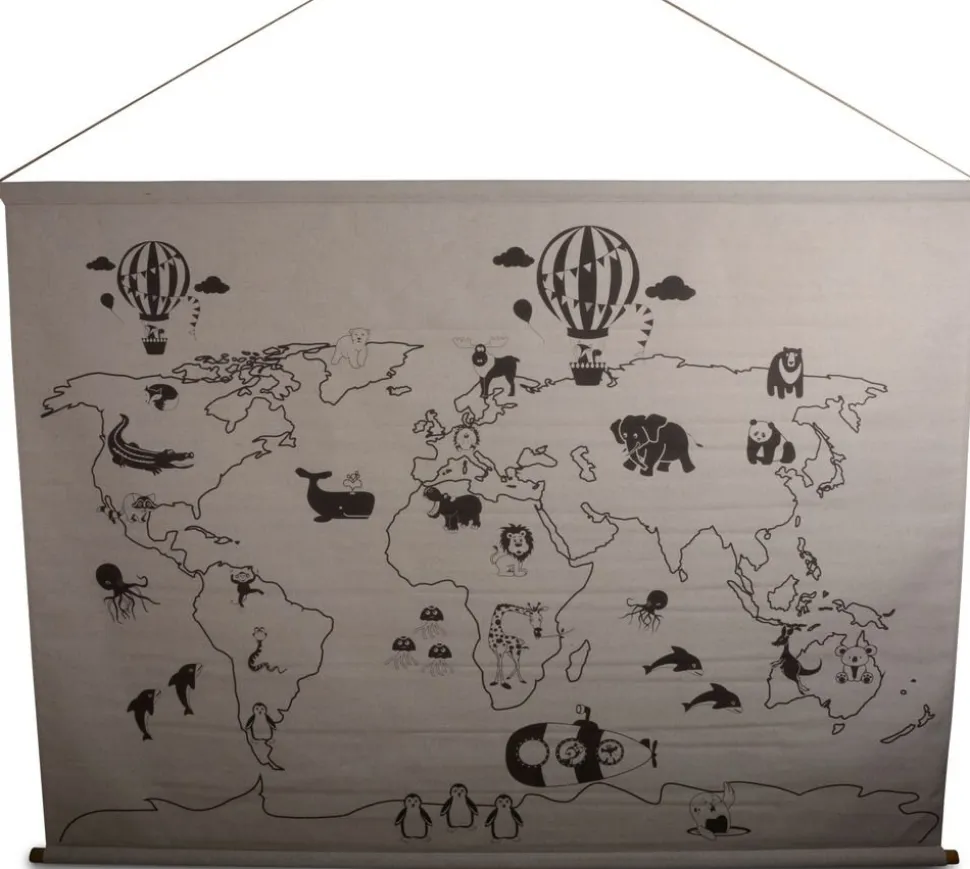 En härlig plansch i linne textil med motiv av världskartan.