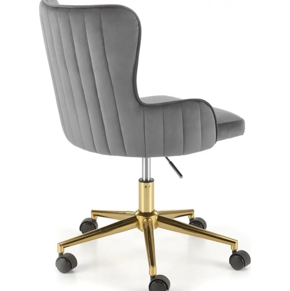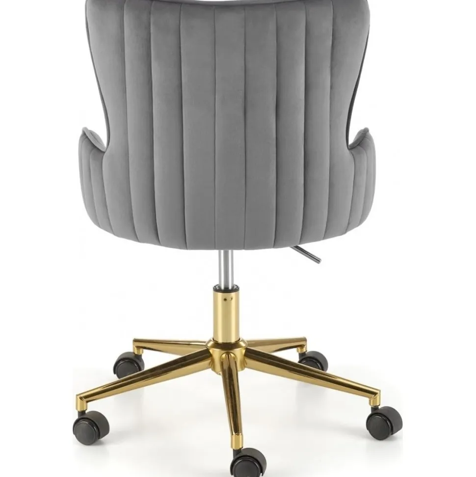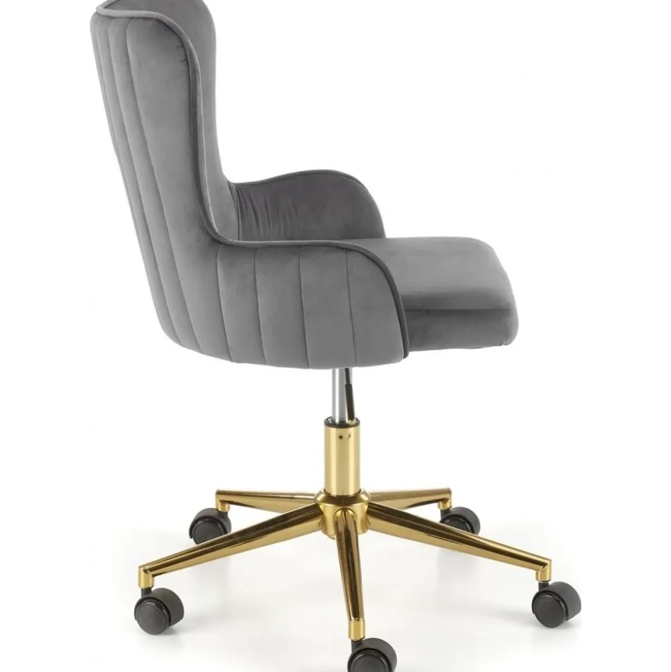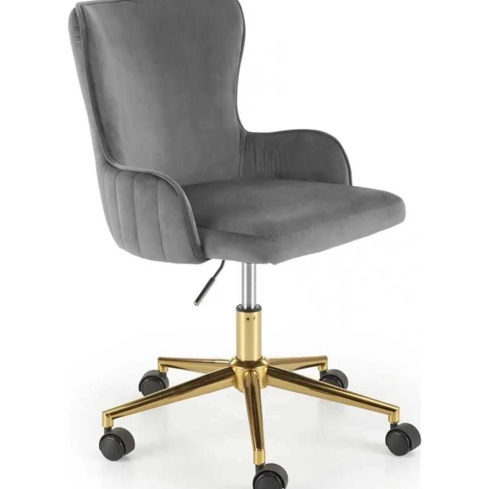 Fåtölj med underrede av metall och klädsel av sammetstyg.