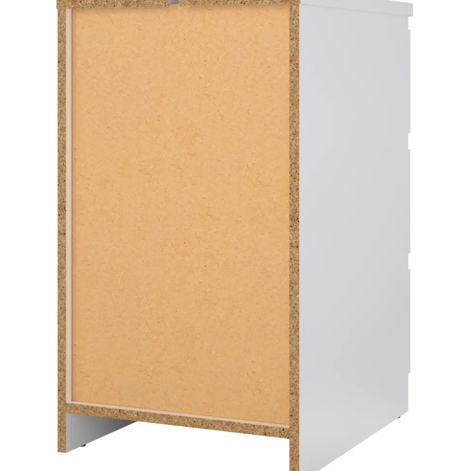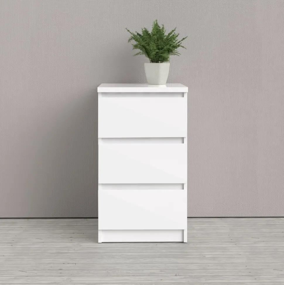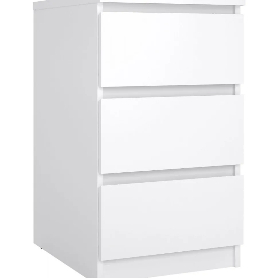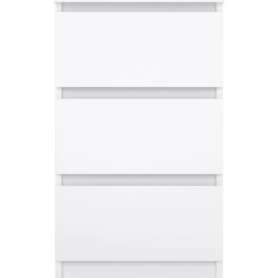 Byrå av trä med kantband av melamin och ABS-plast.