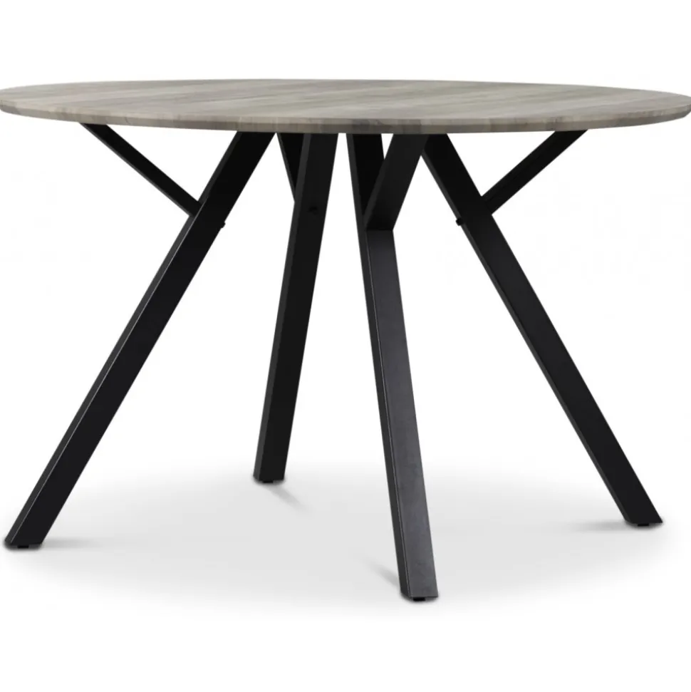 Matgrupp från Skånska Möbelhuset, Smokey matbord 120 cm i diameter med toppskiva i gråbetsad ek foliering. Medföljer 4 st matchande Dalsland karmstol, klassisk pinnstol i svart.