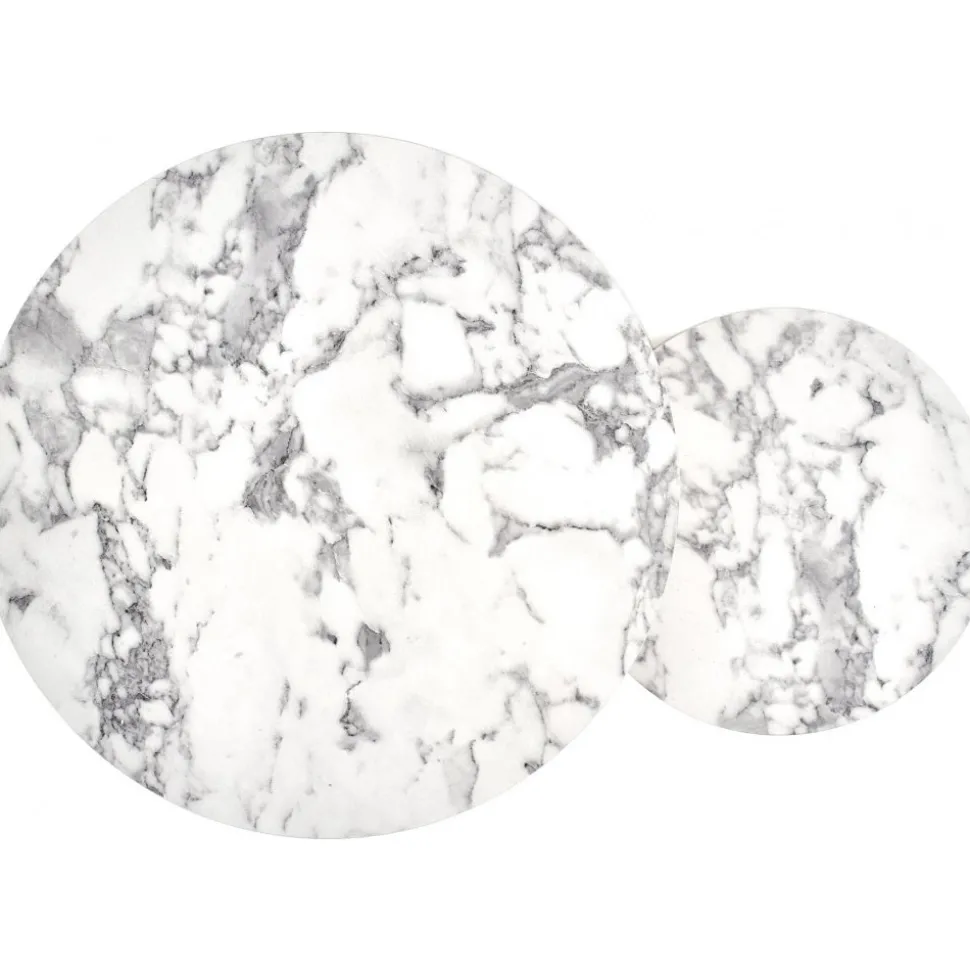 Soffbord set med 2 st Ø38/60 cm – Vit marmoreffekt/guld: