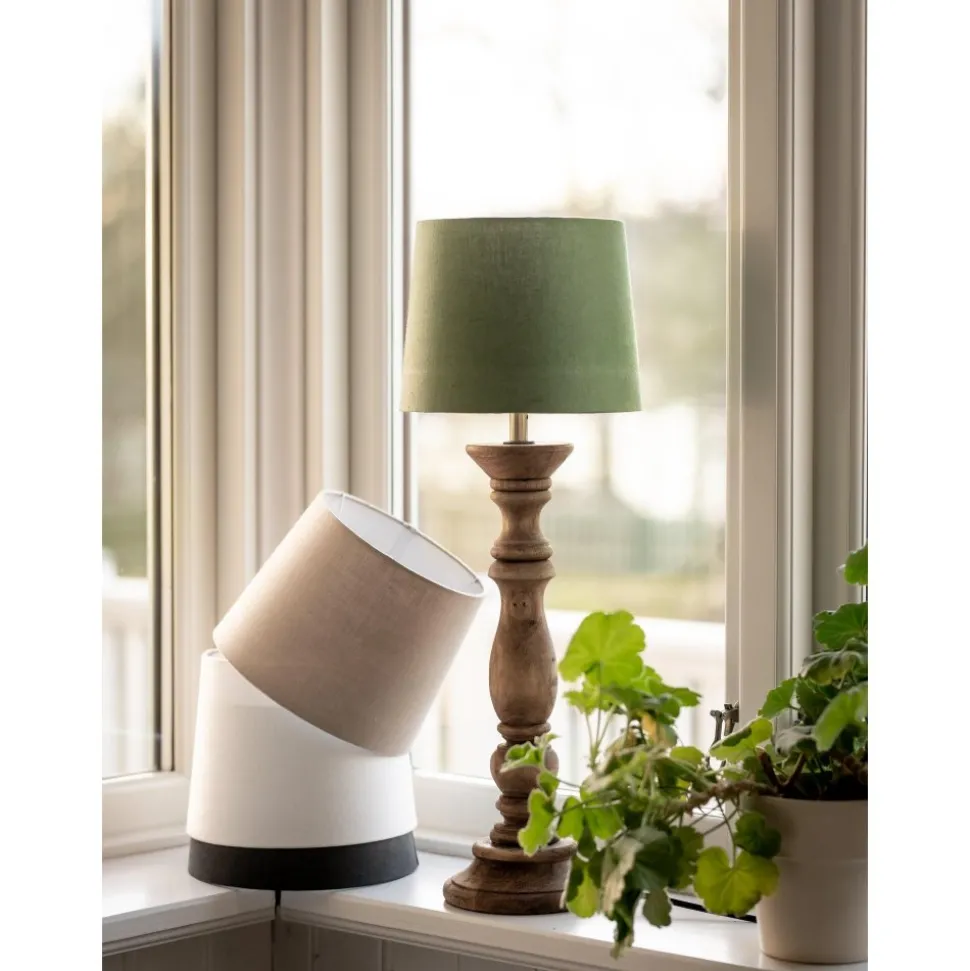 Sofia Lampskärm i ett enfärgat tyg från Svanefors. Detta tyg ingår i serien från Carl Larsson, där flera färgställningar och tryckta illustrationer ingår. Skärmen är transparent på insidan vilket skapar ett vacker helhet då tyget ger ett vackert sken genom hela skärmen. Formen är lätt utställd, har matchande kantband och E27-fäste. Ljuskälla E27 köpes separat.