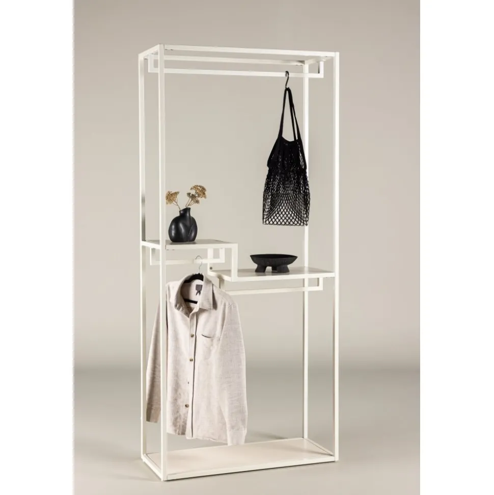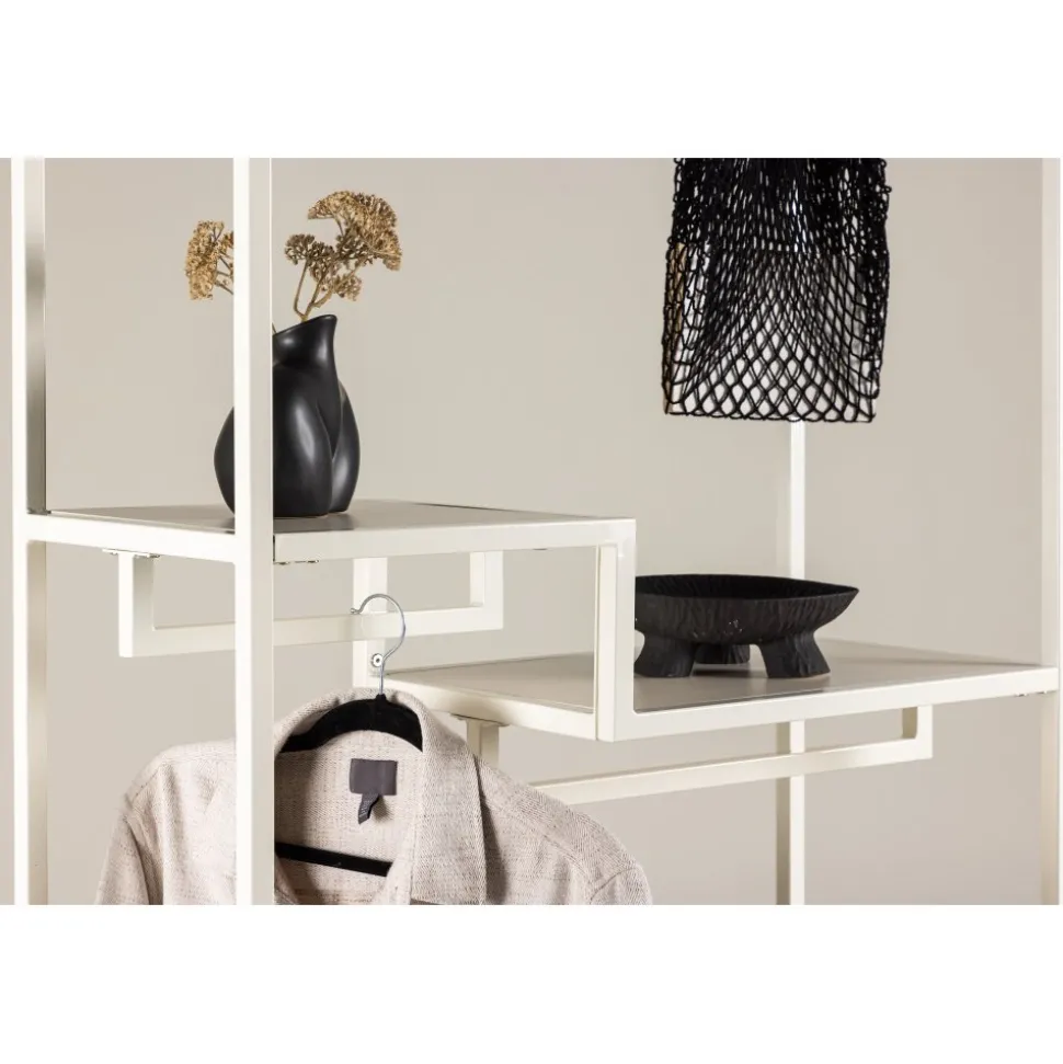 Möta en ny era av stil och ordning med vår klädhängare Staal. Tillverkad i robust stål och klädd i en mjuk beige nyans, är Staal inte bara en funktionell lösning utan även en modern inredningsdetalj som lyfter atmosfären i ditt hem. Staals eleganta och moderna design ger den en tidlös estetik som smälter in i olika rum. Den mjuka beige färgen skapar en lugn och harmonisk atmosfär, vilket gör Staal till ett perfekt tillskott i såväl sovrummet som i hallen. Placera den där du behöver en dos av både stil och organisation. Det som gör Staal unik är dess smarta hyllplan. Två mindre hyllplan ger dig möjlighet att ordna smycken, vikta kläder eller andra små accessoarer, medan det större hyllplanet ger plats för större föremål eller kanske ett dekorativt inslag. Inte nog med det – Staal erbjuder även plats för galgar, vilket gör den till en komplett lösning för dina klädförvaringsbehov. Placera och organisera dina kläder och accessoarer med lätthet med hjälp av Staal. Den är inte bara en praktisk klädhängare utan även en stilfull möbel som sätter tonen för rummet. Staal ger dig möjligheten att kombinera funktion och estetik på ett modernt och imponerande sätt. Välj Staal – din pålitliga följeslagare för att skapa ordning och modern stil i varje del av ditt hem!