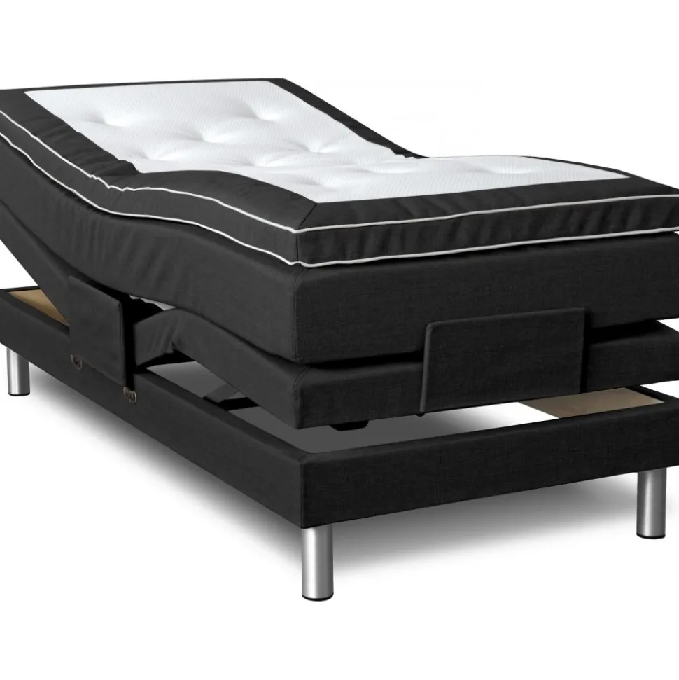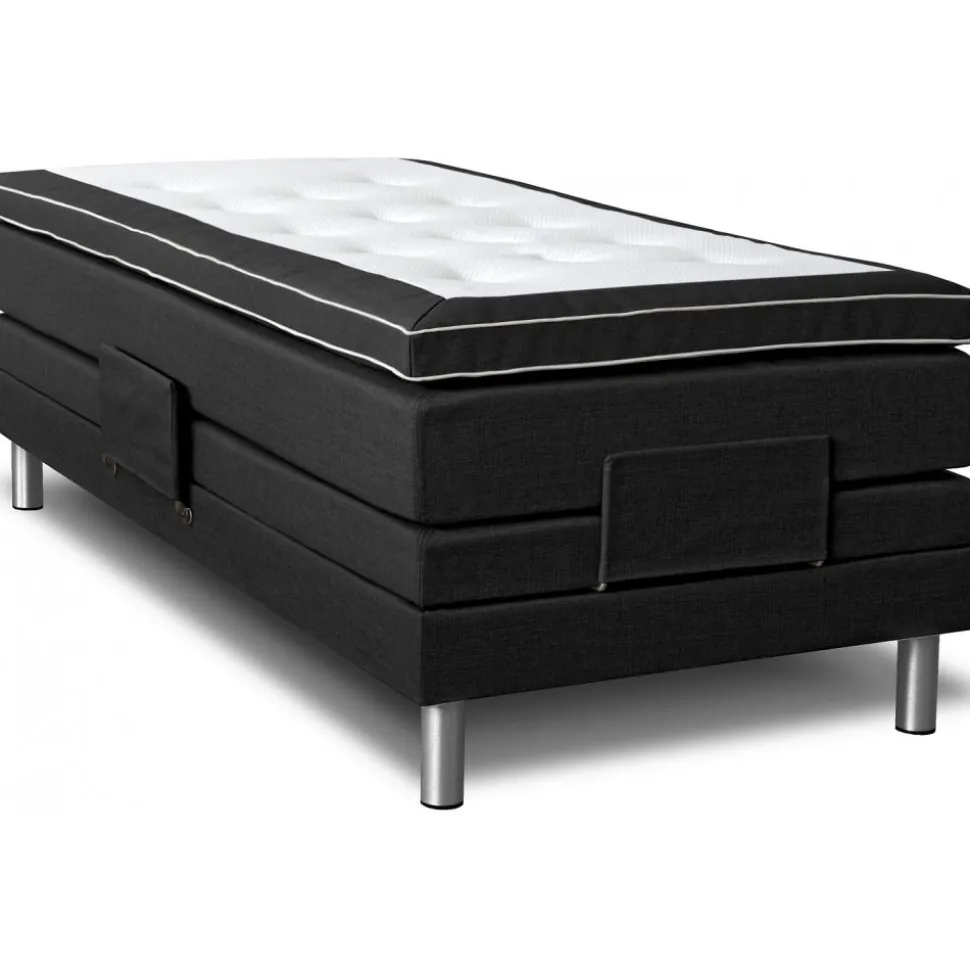 De 16 cm höga metallbenen gör det enkelt att städa under sängen, även med en robotdammsugare. Sängen är klädd i slitstarkt svart tyg (Inari 100) och levereras med en trådlös fjärrkontroll för enkel och smidig justering.
