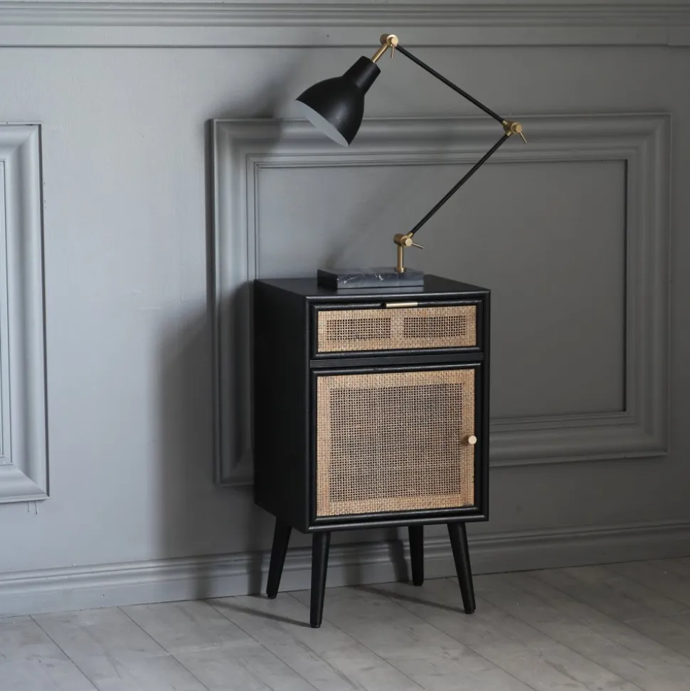 - Stockholm svart sängbord med rotting