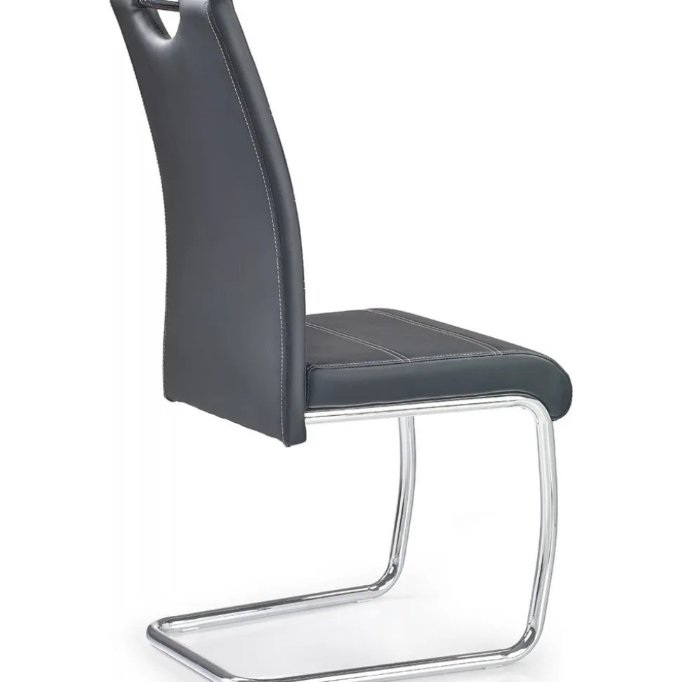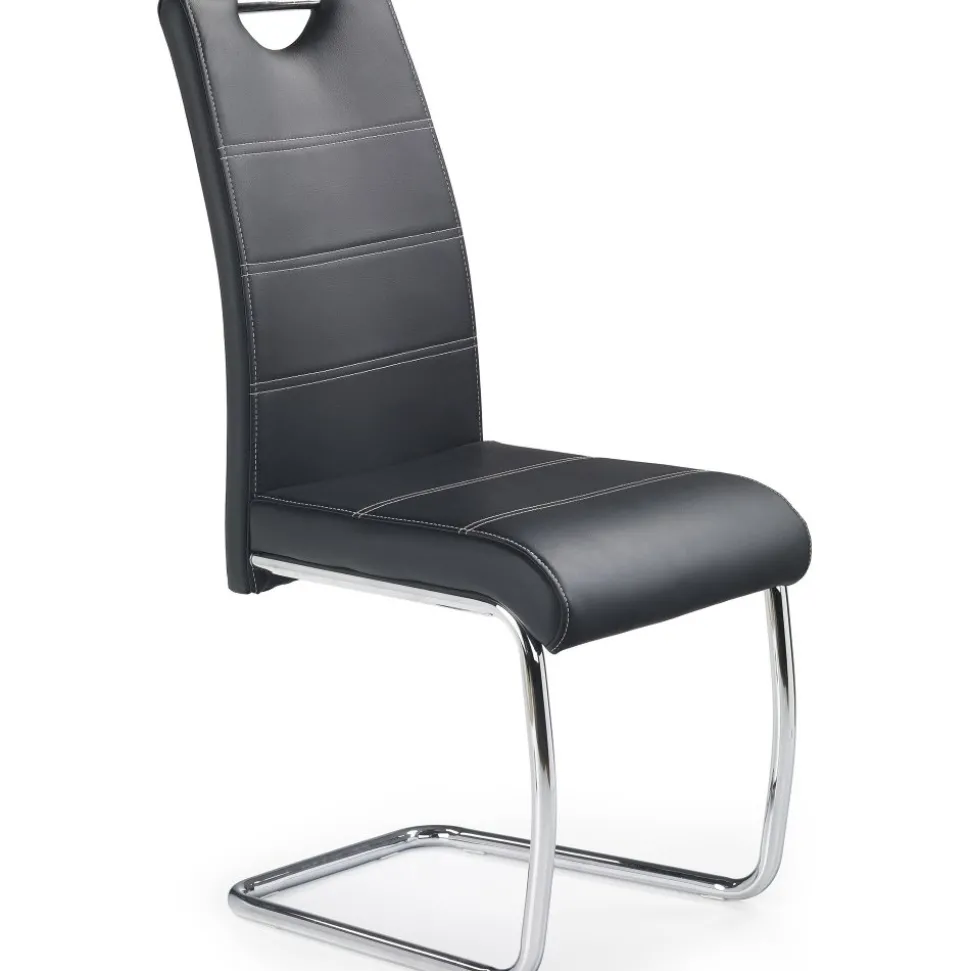 En härlig med en modern design. Stommen är tillverkad i kromad metall och sitsen är klädd med ett mycket behagligt svart konstläder för maximal komfort.