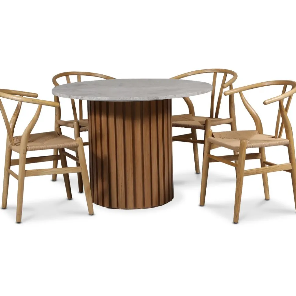 - Sumo matgrupp Ø105 cm inkl. 4 st Brandon matstol – Oljad ek / Silver marmor