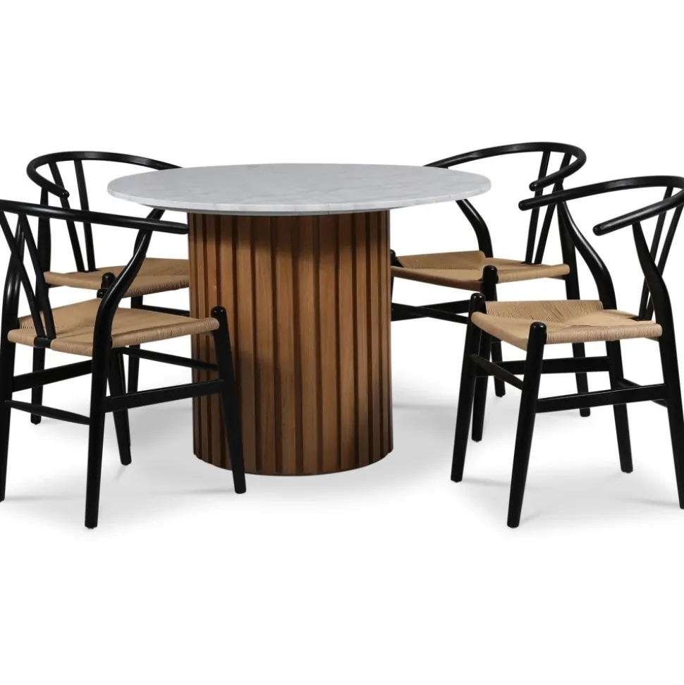 - Sumo matgrupp Ø105 cm inkl. 4 st Brandon svarta matstolar – Oljad ek / Ljus marmor