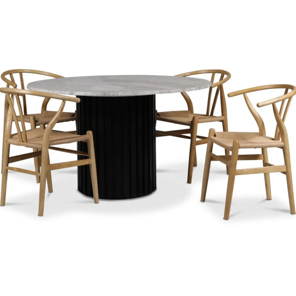 - Sumo matgrupp Ø130cm inkl. 4 st Brandon matstolar – Svartbets / Silver marmor