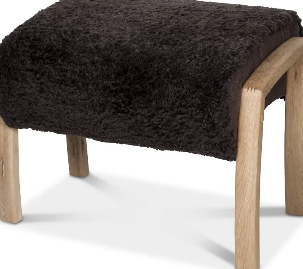 Sune i brunt äkta fårskinn med massiva ben i oljad ek.