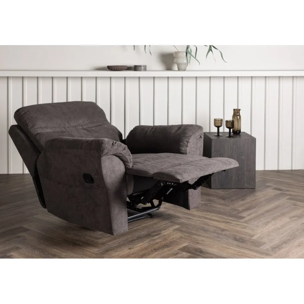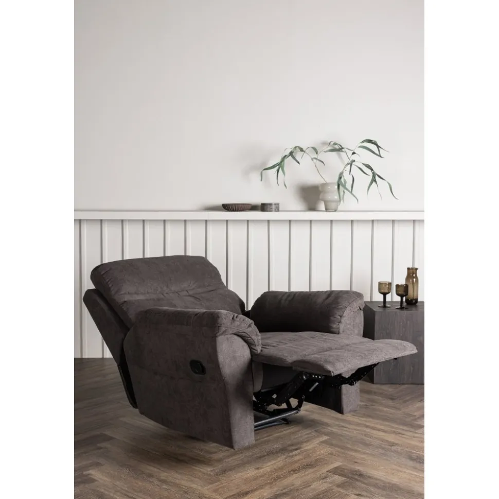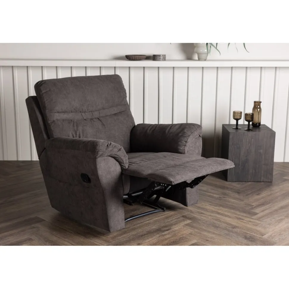 Välkomnas hem till en bekväm som du snabbt gärna sjunker ner i för härlig avkoppling! Den här bruna fåtöljen från serien Taranto är fällbar för extra komfort och har ett skönt fotstöd som möjliggör liggande position. Det bruna polyestertyget har dekorsömmar i sittdelen som framhäver fåtöljens mjuka kuddar och bjuder in till bekväma stunder. Designen är relativt robust och ger på så sätt ett stadigt intryck till blickfånget. Taranto är den perfekta fåtöljen helt enkelt när lite avkoppling önskas efter en lång dag. Placera solitär i läshörnan eller tillsammans med matchande soffmöbler. Här får du garanterat en mysig och inbjudande atmosfär i vardagsrummet! Levereras omonterad.