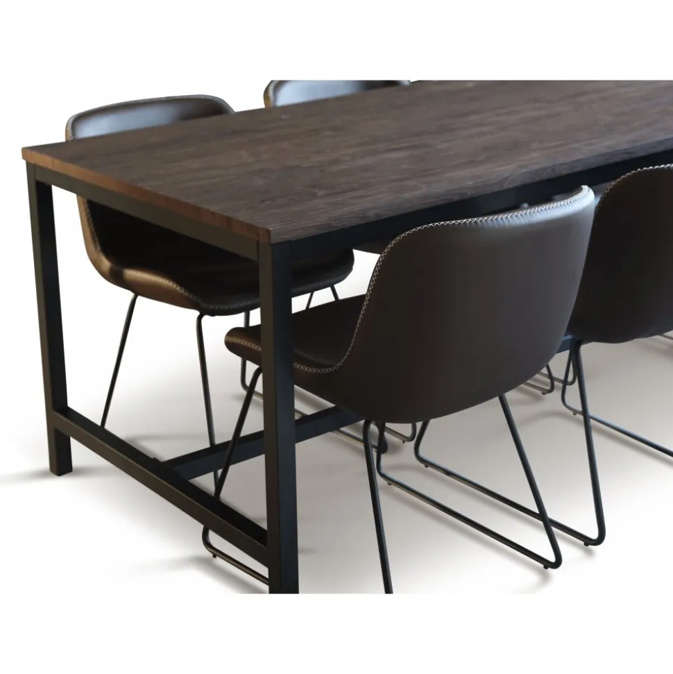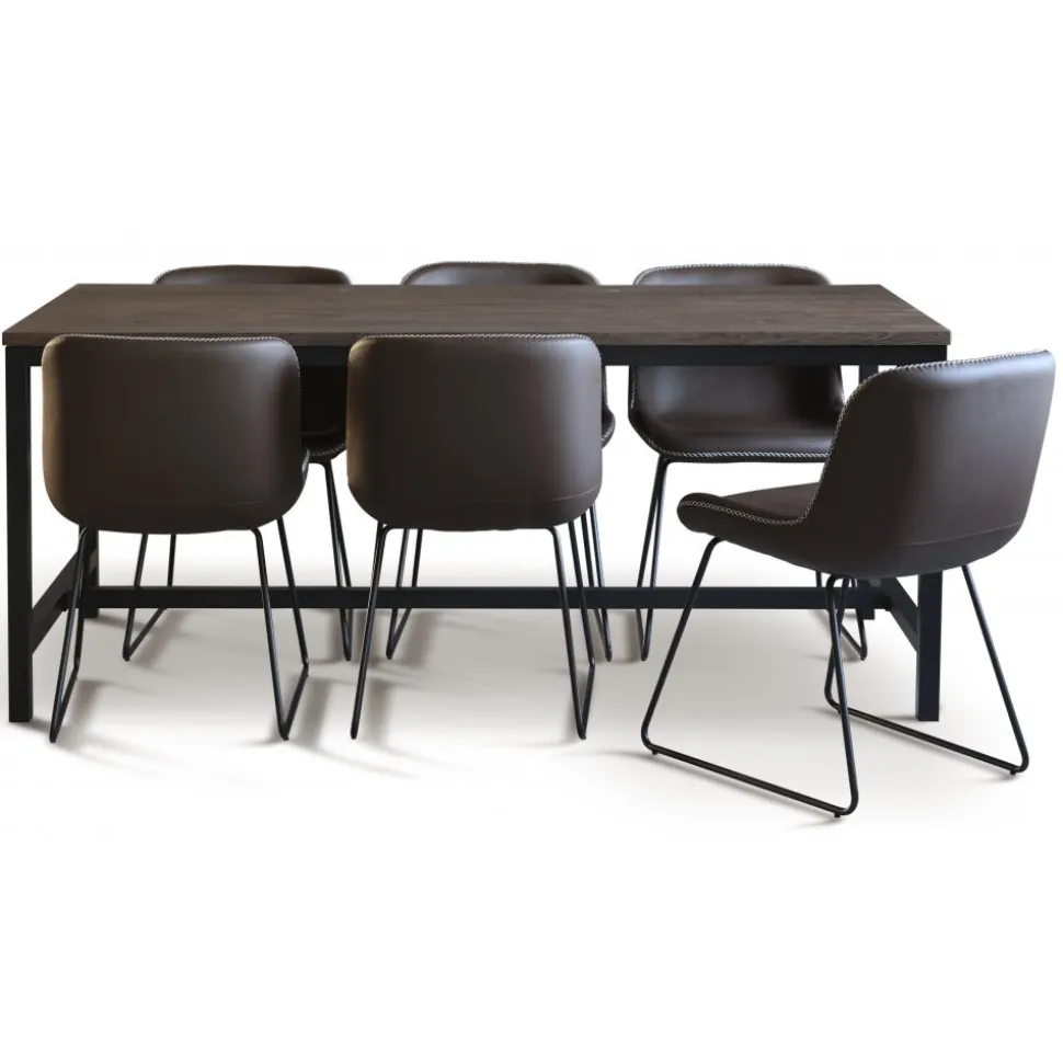 Matgrupp med matbord och 6 st stolar ur serien Texas. Matbordet är gjort av folierad MDF med ben av metall. Stolarna är gjorda av metall med klädsel av konstläder(PU).