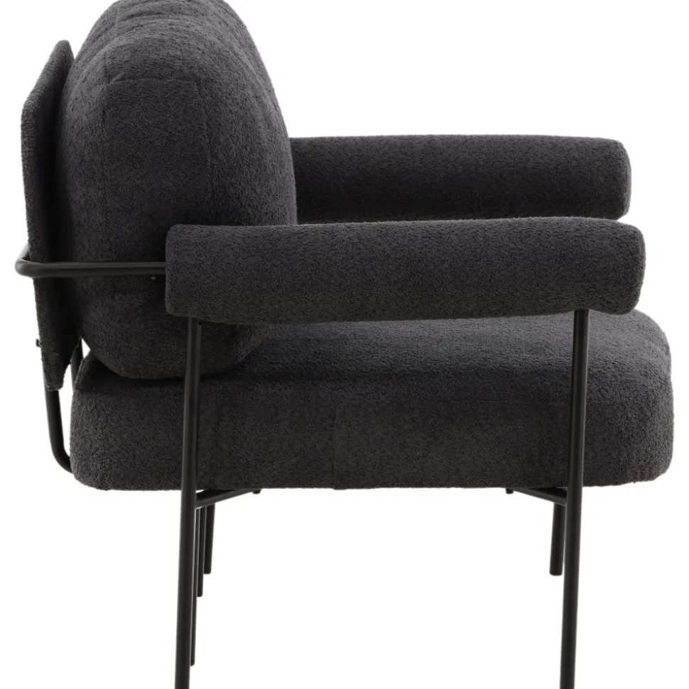 Fåtölj som höjer mysfaktorn i vardagsrummet. Den generösa sitsen tillsammans med det mjuka ryggstödet och rundade armstöden skapar en bekvämlighet utöver det vanliga. Fåtöljen är klädd i ett grått boucletyg och har ben av svart stål. Placera intill soffgruppen eller varför inte ensam som en vacker inredningsdetalj. De nordiska formerna och nostalgiska designen skapar ett härligt blickfång i alla rum och är lätt att matcha med övrig inredning.