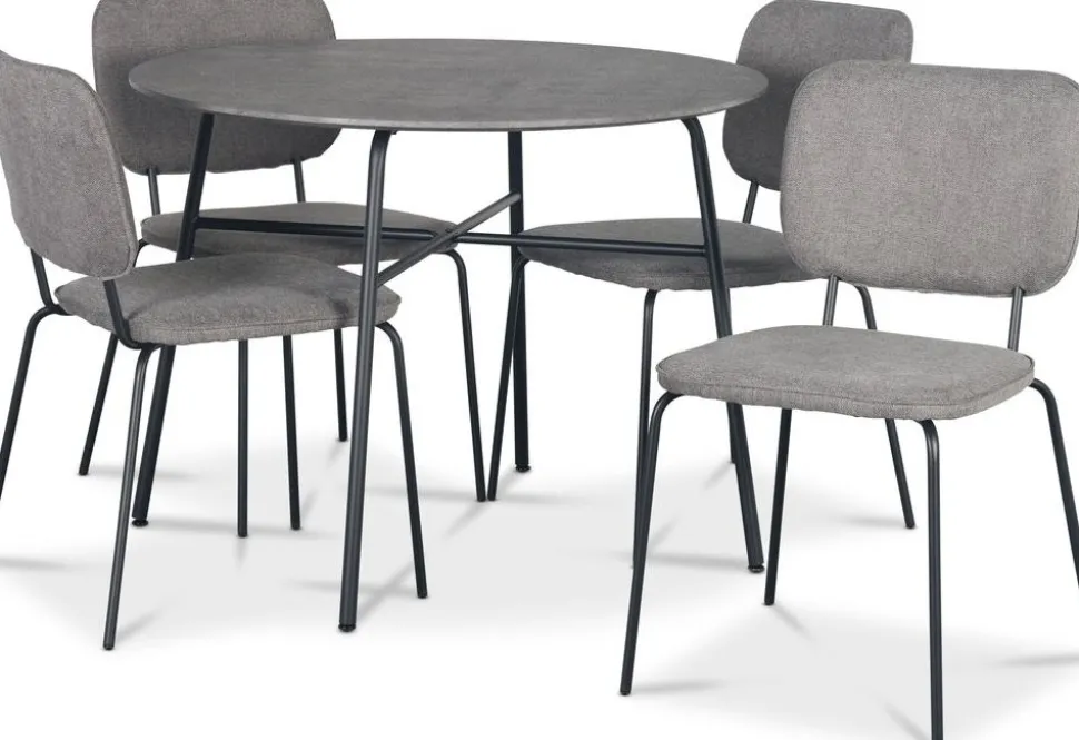- Tofta matgrupp Ø100 cm bord i betongimitation + 4 st Lokrume grå stolar