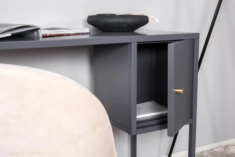 Torsnäs ger dig möbler i stilren design, olika färger på sängbord, vitrinskåp, skrivbord, soffbord och skåp. Tillverkade av hållbar metall som är pulverlackerad. Detta är nätt med ett praktiskt skåp för förvaring.