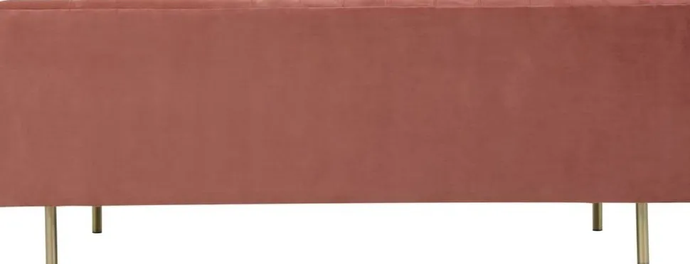Soffa Toto i en häftig design med mässingsfärgade metallben, djuphäftade knappar och ett mjukt rosa sammets tyg.