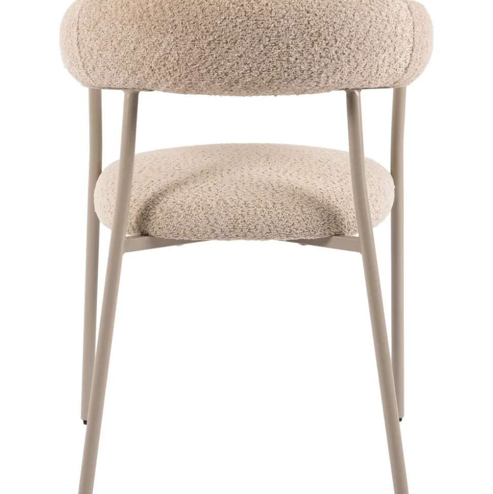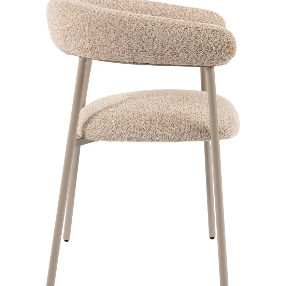 Karmstol i beige tyg(UF998-04) med cremefärgat metallunderrede.